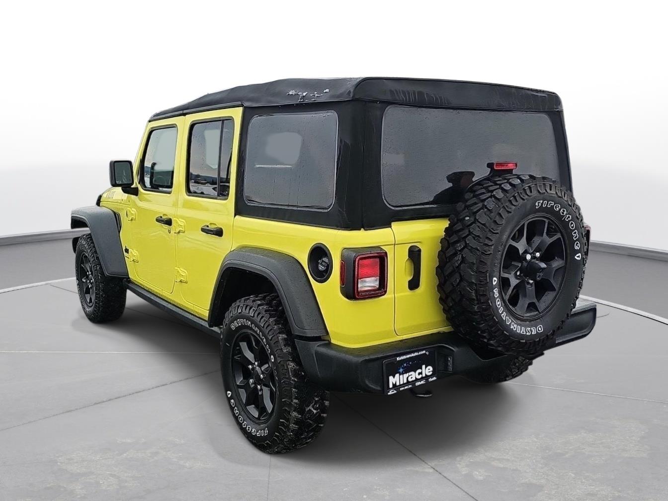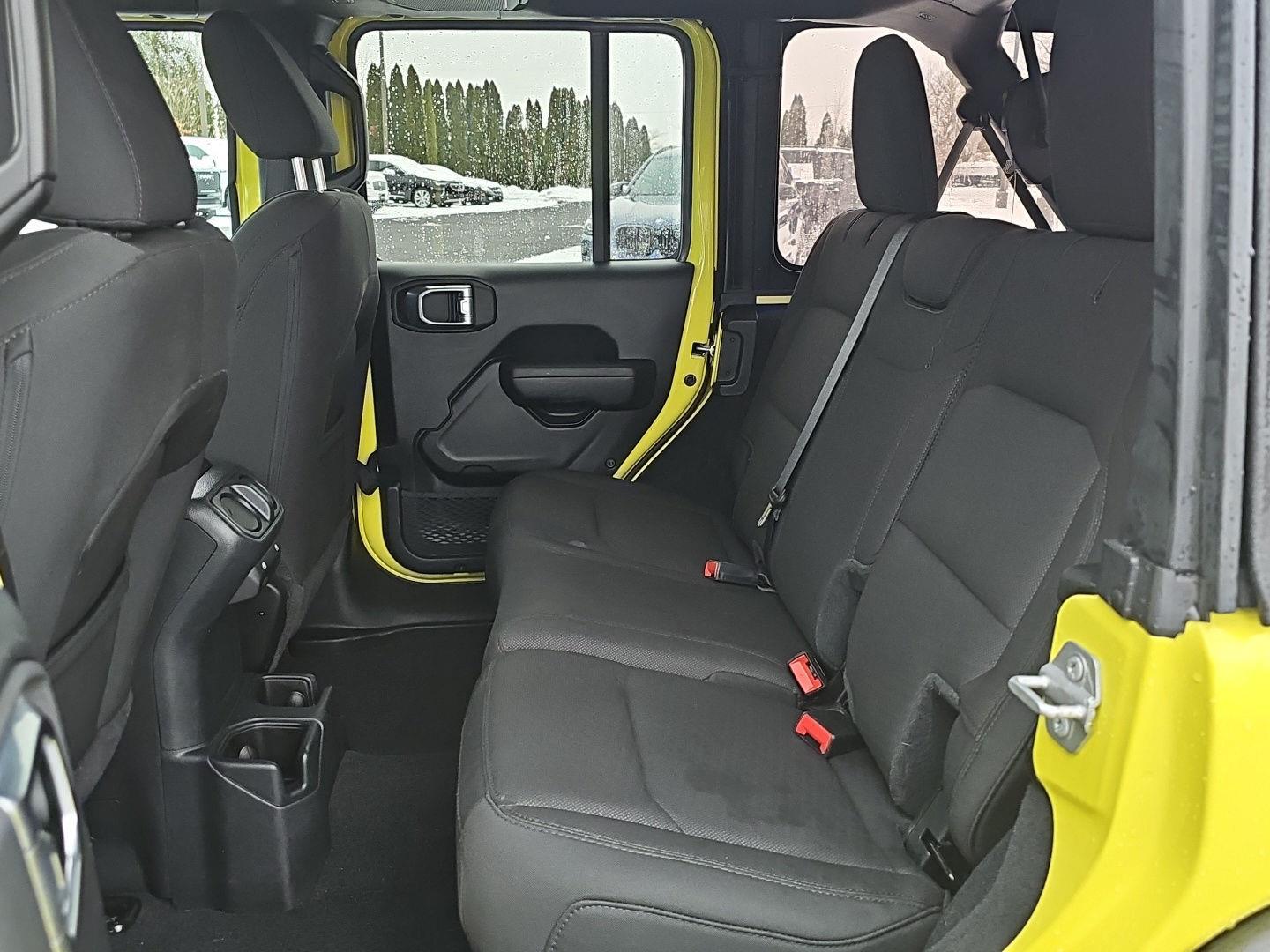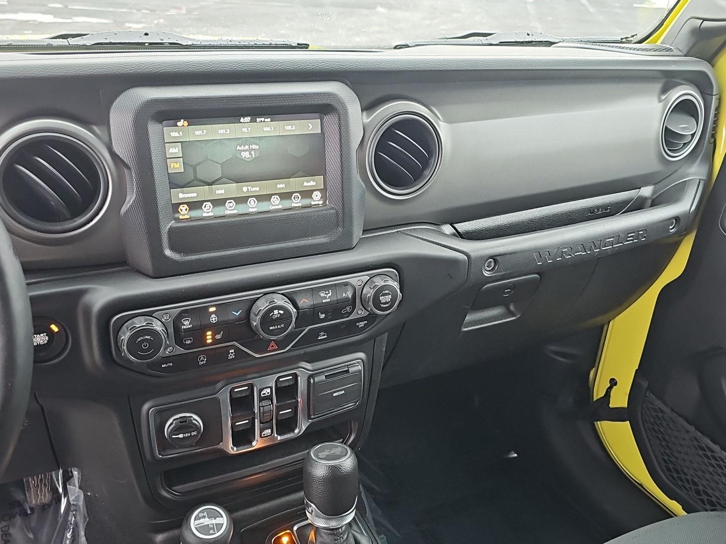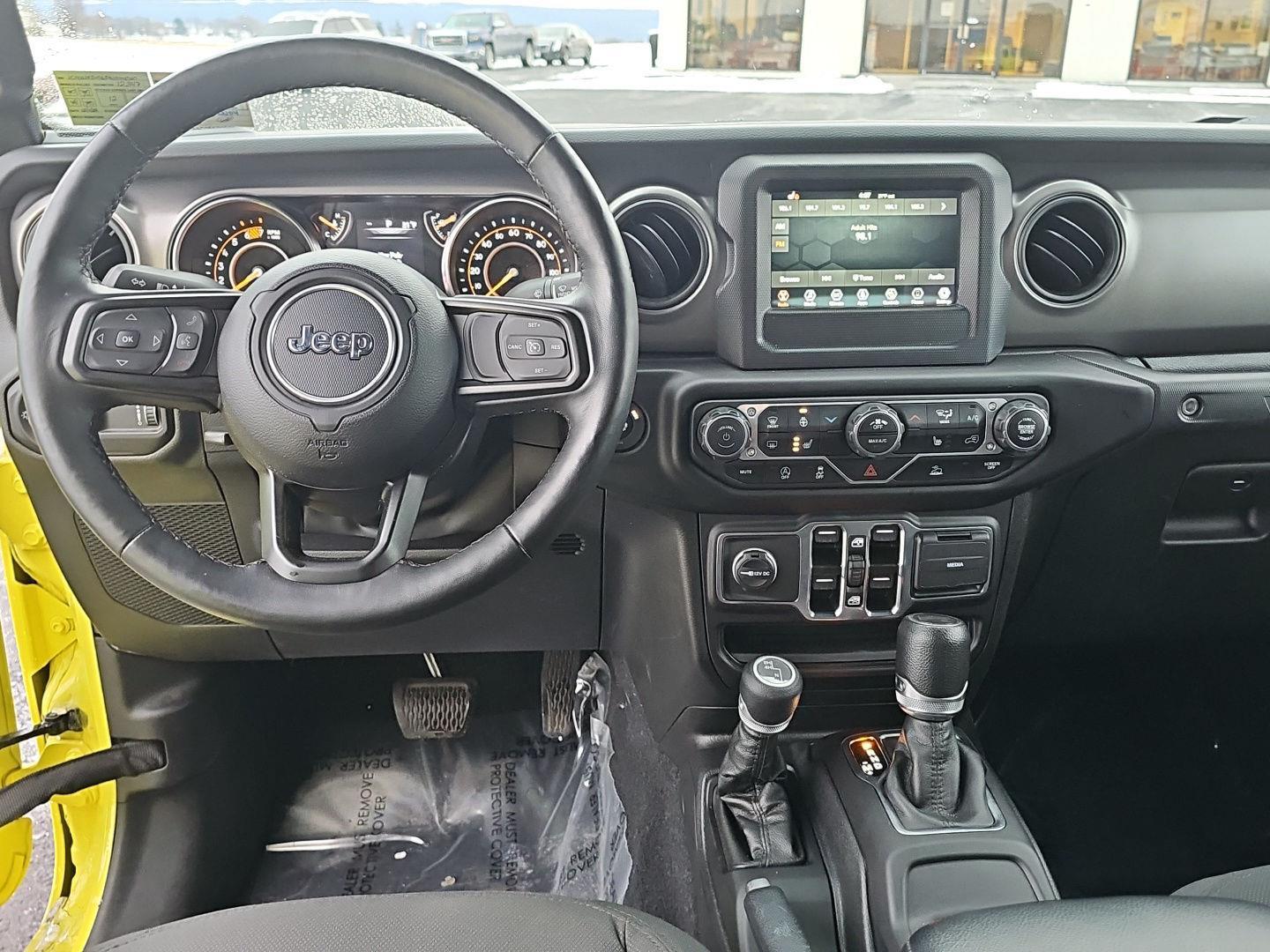 Stand out in this 2023 Jeep Wrangler Willys — striking Yellow exterior with a Black leather interior. Ready for adventure, it delivers true off‑road performance with 4WD, locking/limited‑slip differentials, 10" ground clearance and beefy 255/70R18 tires, while safety systems like ABS, traction and stability control and a full suite of airbags keep you protected. Enjoy everyday comfort and convenience with heated leather seats and steering wheel, multi‑adjustable power seats, keyless entry with remote start/climate control, premium audio with subwoofer, automatic headlights and a full‑size spare. Backed by a 36‑month/36,000‑mile basic warranty, 60‑month/60,000‑mile powertrain warranty and 60‑month rust coverage — come test drive it today.
