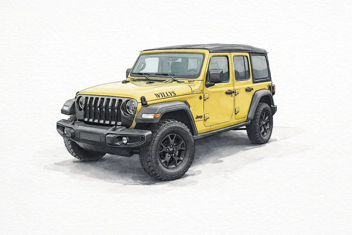 All-terrain capable Jeep Wrangler Willys in High Velocity