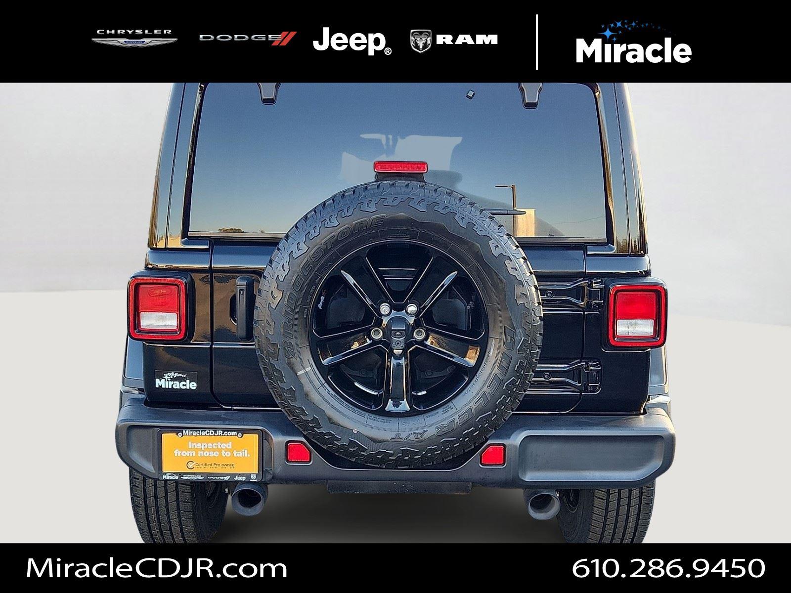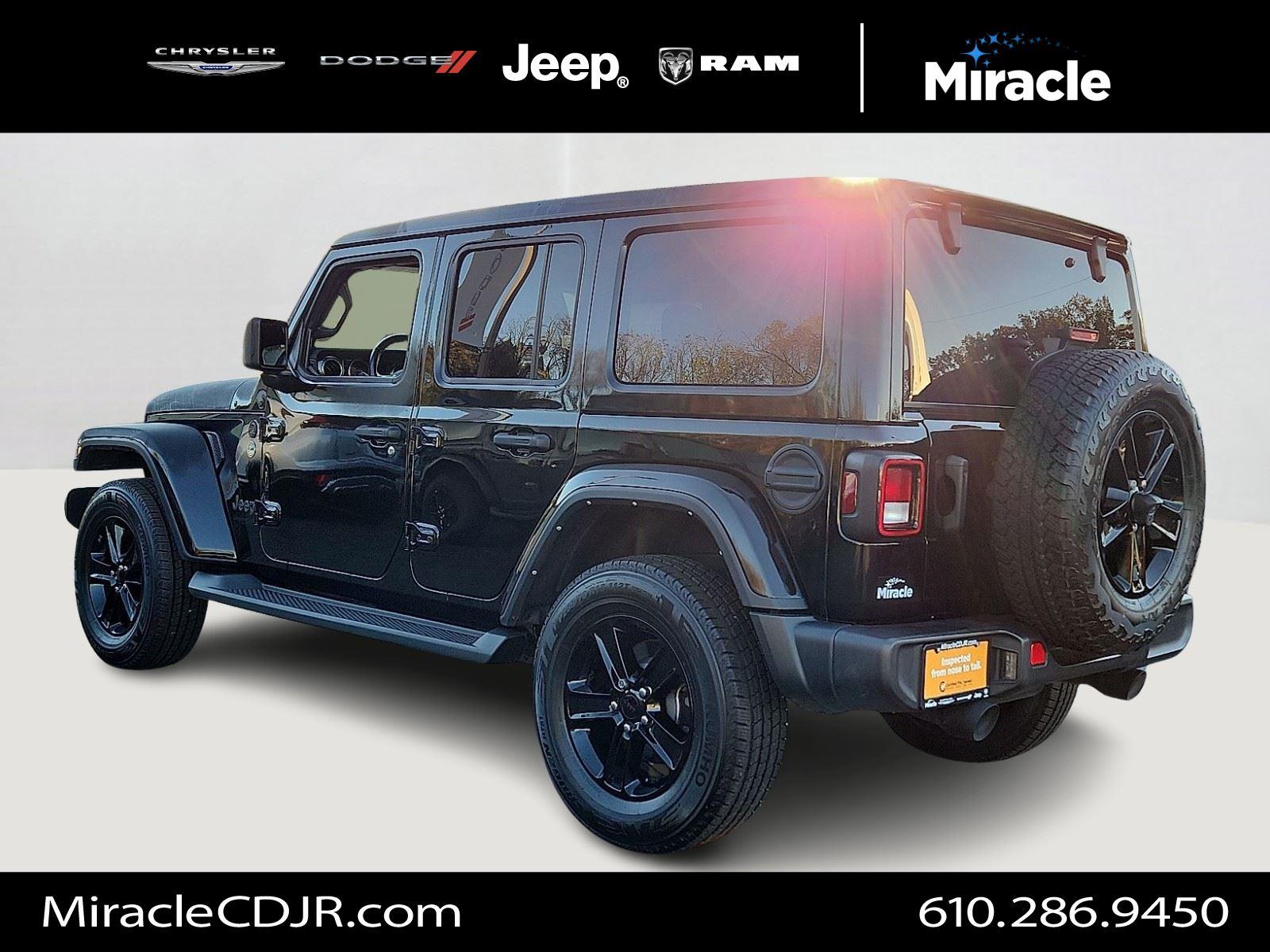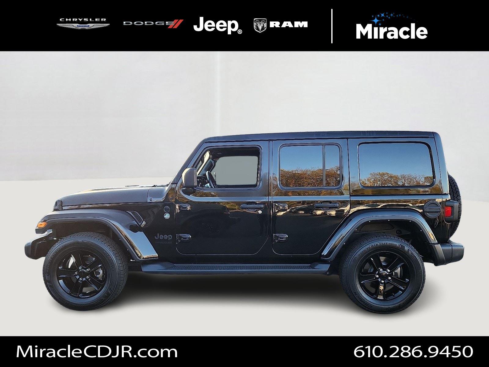 Turn heads in this 2022 Jeep Wrangler Unlimited Sahara Altitude — striking Black exterior with a Black interior and leather-wrapped, heated steering wheel. Built for adventure: true 4WD, 10" ground clearance, 255/70R18 alloy wheels and a full‑size spare, plus ABS, traction control, limited‑slip differential and vehicle stability for confident handling. Comfort and convenience include heated front seats, dual-zone climate with remote start, keyless entry/start, power windows and heated mirrors. Premium touches like navigation, a subwoofer, fog lamps and automatic headlights — all backed by a 3‑year/36K basic and 5‑year/60K powertrain warranty. Ready for a test drive?