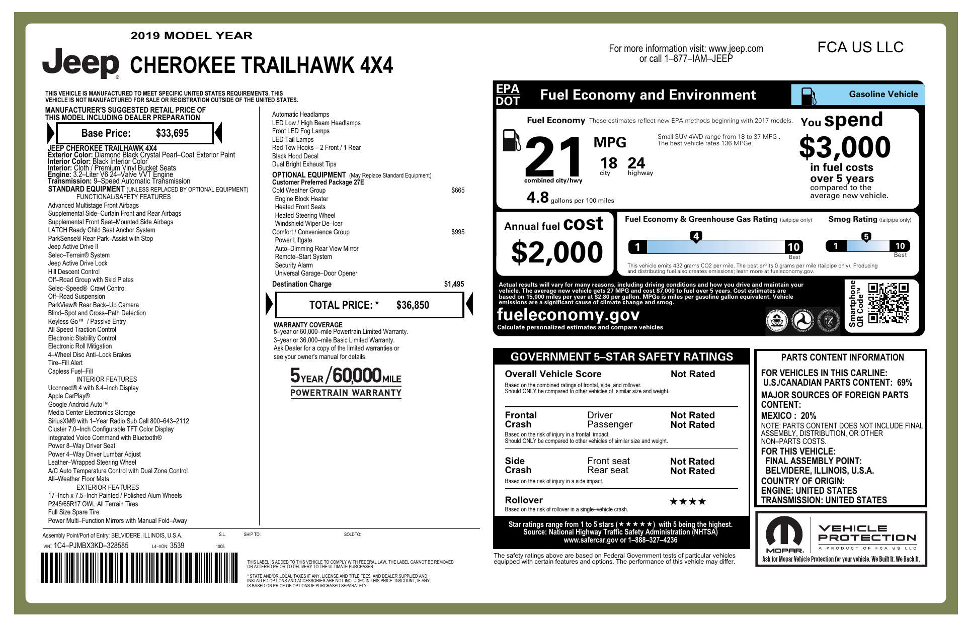 Diamond Black 2019 Cherokee Trailhawk, ready for adventures