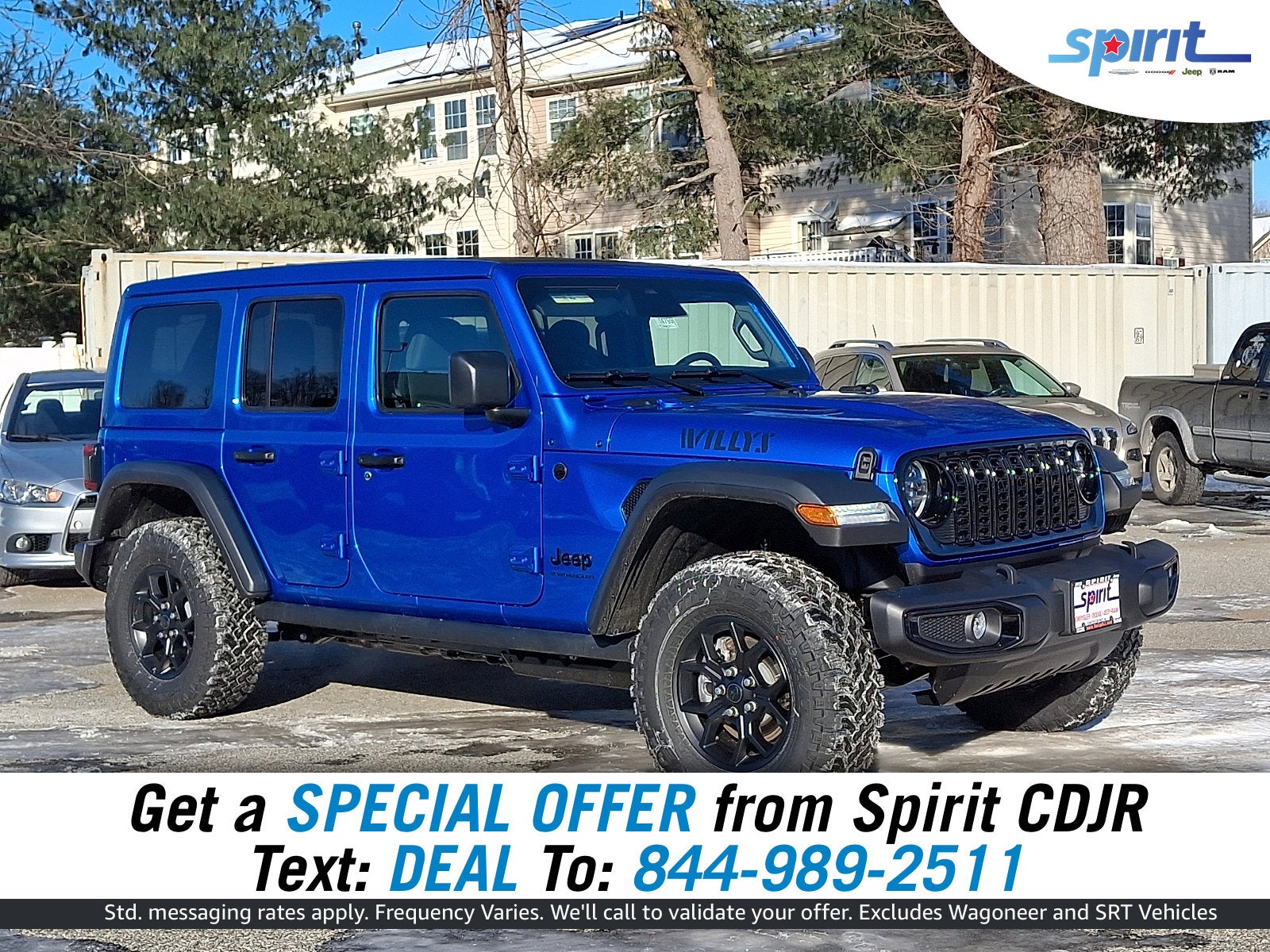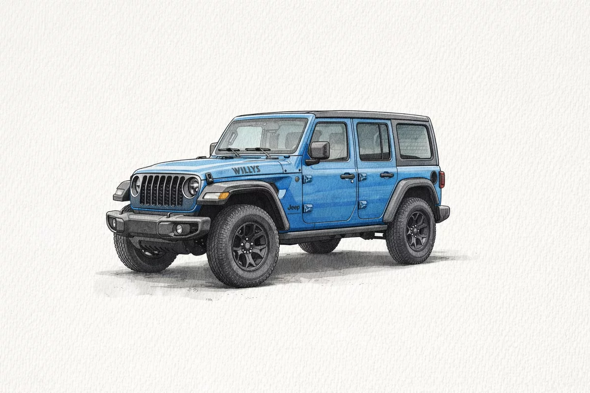 Introducing the 2026 Jeep Wrangler Willys — finished in striking Blue with a Black interior. Built for adventure with standard 4WD, 9.7" ground clearance and rugged 245/75R17 tires (plus a full‑size spare), it’s ready for trails or the daily commute. Confidence comes standard too: ABS, traction control, vehicle stability, multiple airbags and TPMS. Enjoy modern convenience with keyless entry, remote start, dual‑zone climate control, a power driver seat, heated mirrors, cruise control and steering‑wheel controls. Come experience the Willys — raw capability with modern comfort.