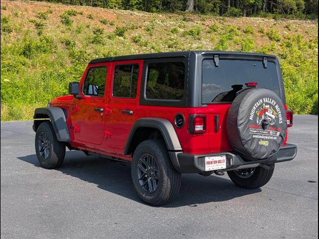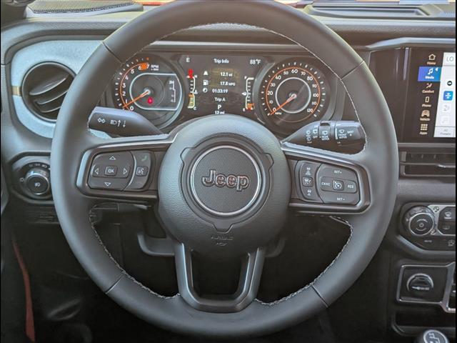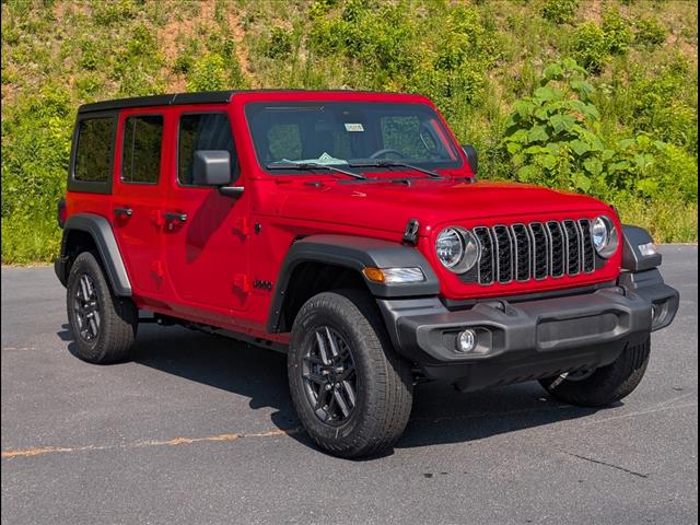 Meet the 2025 Jeep Wrangler Sport S — dressed in eye-catching Red and built to go anywhere. This 4‑door Wrangler comes standard with 4WD, rugged 245/75R17 all‑terrain tires, 9.7" ground clearance and a full‑size spare, so trail days are effortless; safety and control are covered with ABS, electronic brake assist, traction and stability control plus driver and side airbags with head protection. Enjoy everyday comfort and convenience with remote ignition, dual climate controls, a power driver’s seat, automatic headlights and a tire pressure monitor — all backed by a 3‑year/36,000‑mile basic and 5‑year/60,000‑mile powertrain warranty. Stop by for a test drive and see why the Wrangler Sport S is the perfect mix of capability and comfort.