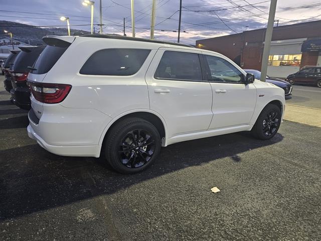 Turn heads in the pristine White 2026 Dodge Durango GT Plus — a bold, family-ready SUV that blends muscular performance with everyday comfort. Enjoy seating for up to seven, a potent V6 with available AWD for confident towing and all-weather control, plus a premium interior with leather-trimmed seating, Uconnect infotainment (Apple CarPlay/Android Auto) and modern safety features. Backed by basic, powertrain and rust warranties for added peace of mind — ask us for the full coverage details and to schedule your test drive today.