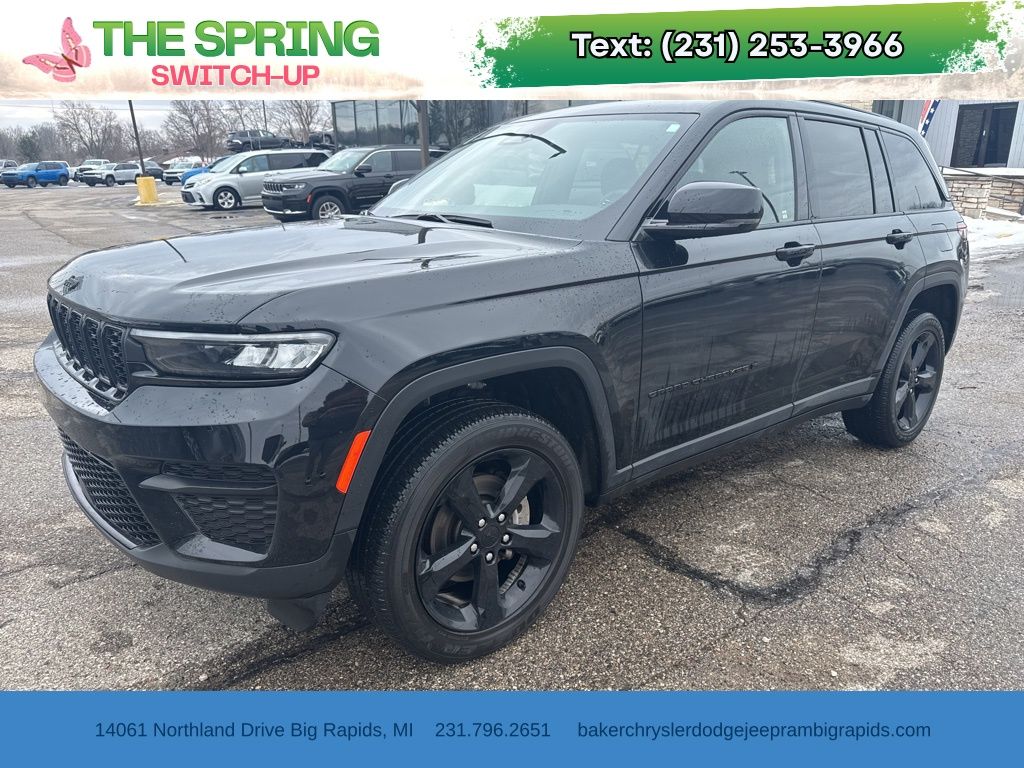 2023 Jeep Grand Cherokee Altitude — finished in sleek Black and built to go anywhere. This Altitude pairs confidence-inspiring 4WD, locking/limited-slip differentials and 4‑wheel ABS with a full suite of airbags, traction and stability control plus vehicle anti-theft protection for peace of mind. Inside you’ll find heated leather seats, heated leather-wrapped steering wheel, power multi-adjustable front seats with lumbar, keyless start/entry and remote ignition with climate control — roomy five-passenger comfort with a full-size spare and 8.4" ground clearance. Backed by a 3‑year/36k basic and 5‑year/60k powertrain warranty. Want to take it for a spin?