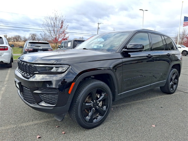 Turn heads in this 2022 Jeep Grand Cherokee Altitude — sleek Black exterior with a Black interior and attitude to match. Confident 4WD paired with ABS, traction control and stability systems means secure handling in all conditions. Enjoy premium comfort with heated front seats, heated leather-wrapped steering wheel, dual-zone climate with remote start, and a power sunroof for an open, refined cabin. Safety and convenience are covered with a full complement of airbags, vehicle anti-theft, rain-sensing wipers, alloy wheels and a full‑size spare. Backed by a 3-year/36K basic and 5-year/60K powertrain warranty — stop by or call today to see it and take a test drive.
