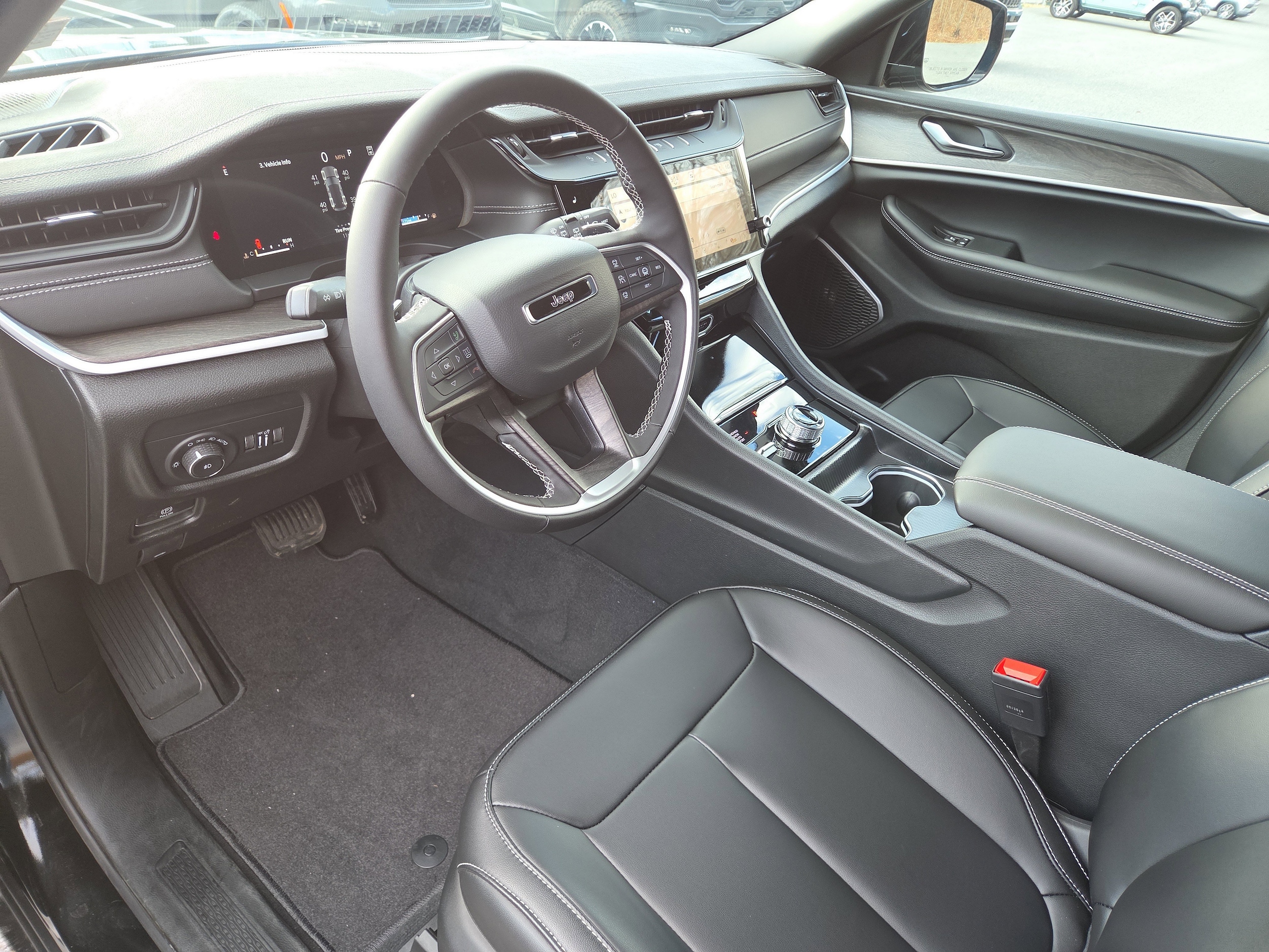 Turn heads in the 2026 Jeep Grand Cherokee Limited — finished in sleek Black with a matching Black interior. This SUV pairs confident capability (standard 4WD, stability/traction control and ABS) with premium comfort: heated leather-wrapped steering wheel, heated power front seats with lumbar, power sunroof, navigation and a premium subwoofer. Convenient tech like keyless entry, remote ignition with climate control, tire-pressure monitoring and run-flat tires add peace of mind, while a full suite of airbags and vehicle anti-theft systems keep you secure. Spacious five-passenger seating, generous cargo room and solid factory coverage (36/36 basic, 60/60 powertrain, 60-month rust) make it a smart, stylish choice — come take one for a test drive today.