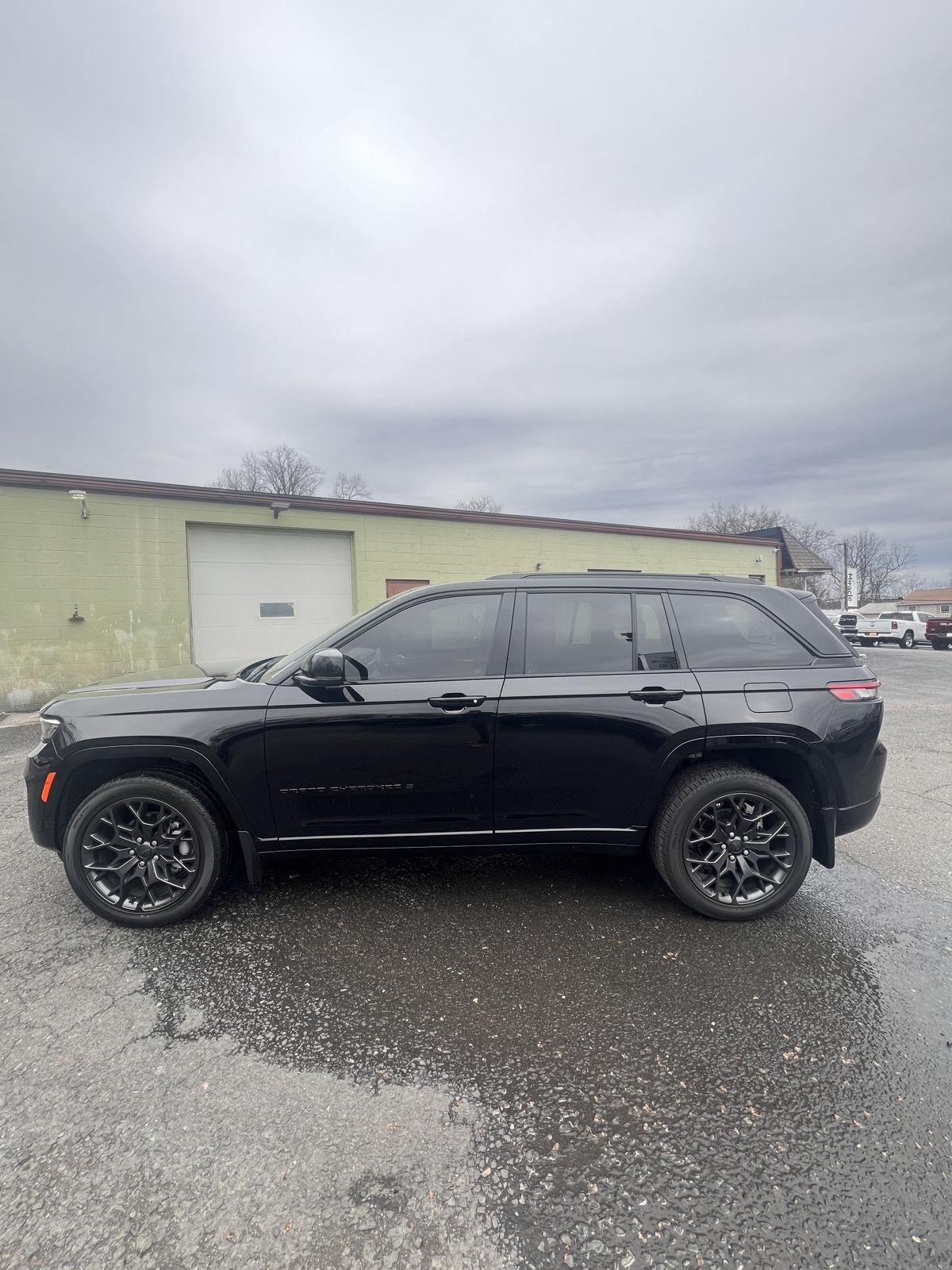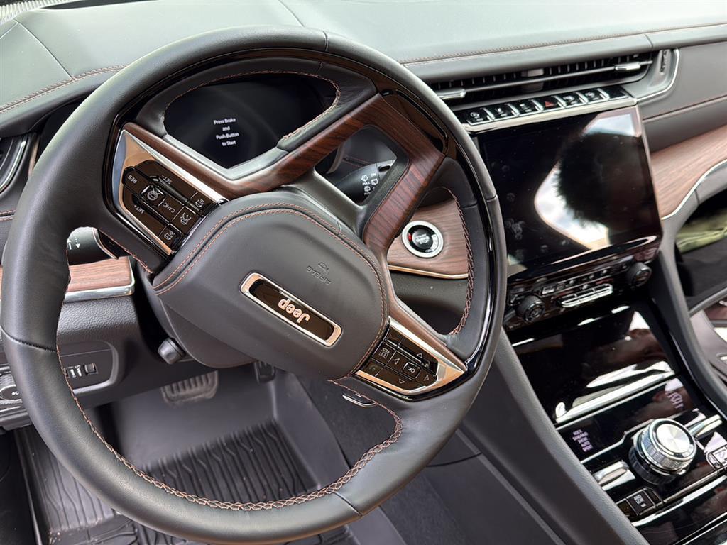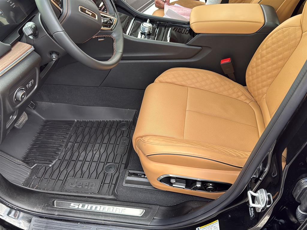 Meet the 2025 Jeep Grand Cherokee Summit — Black on Black, and built to impress. This Summit pairs refined luxury with serious capability: leather, heated AND cooled power front seats with lumbar support, heated leather steering wheel, and a power sunroof for an upscale cabin experience. Confident all-weather performance comes from full-time 4WD, ABS, traction and stability control, and a limited-slip differential, while advanced safety features include multiple airbags and electronic brake assistance. Tech and convenience are covered with keyless entry, remote start with climate control, built-in navigation, subwoofer, alloy wheels on 265/50R20 tires, and a full-size spare. Backed by a 3-year/36k basic and 5-year/60k powertrain warranty — come take this Summit for a test drive today and feel the difference.