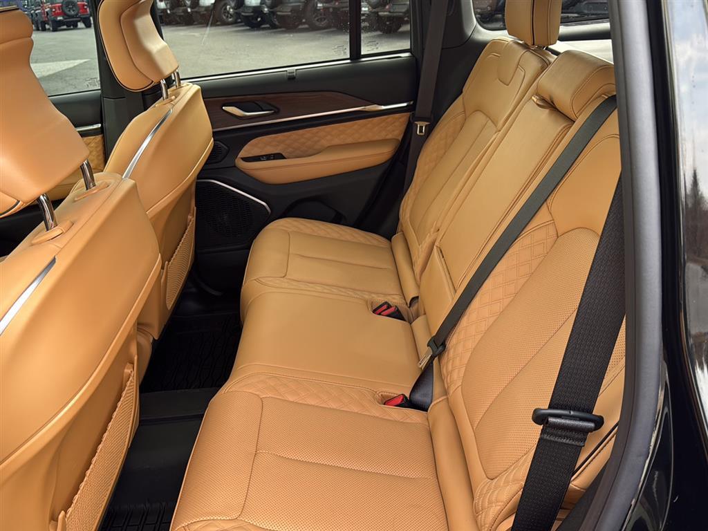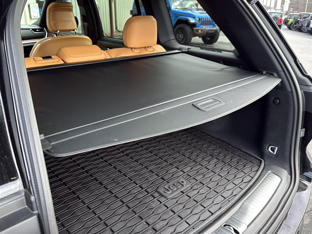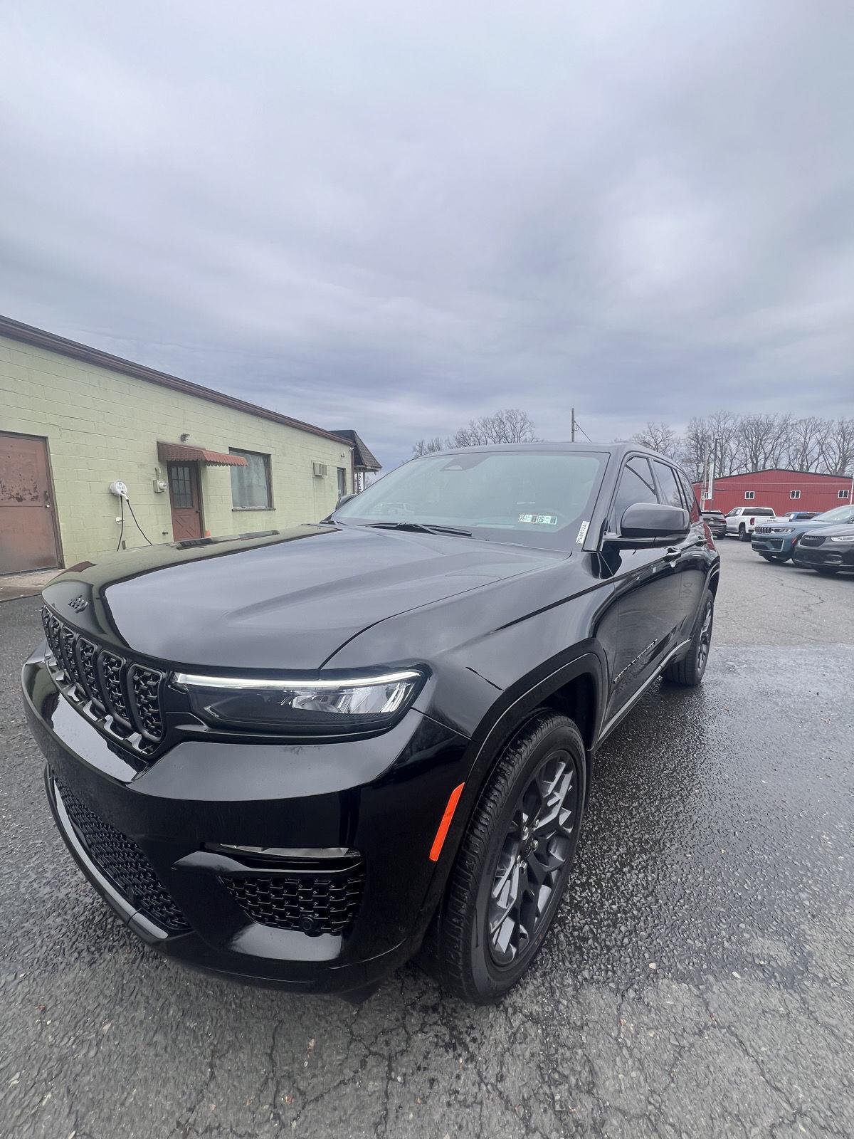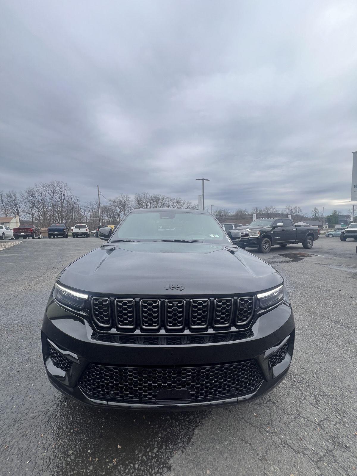 Meet the 2025 Jeep Grand Cherokee Summit — Black on Black, and built to impress. This Summit pairs refined luxury with serious capability: leather, heated AND cooled power front seats with lumbar support, heated leather steering wheel, and a power sunroof for an upscale cabin experience. Confident all-weather performance comes from full-time 4WD, ABS, traction and stability control, and a limited-slip differential, while advanced safety features include multiple airbags and electronic brake assistance. Tech and convenience are covered with keyless entry, remote start with climate control, built-in navigation, subwoofer, alloy wheels on 265/50R20 tires, and a full-size spare. Backed by a 3-year/36k basic and 5-year/60k powertrain warranty — come take this Summit for a test drive today and feel the difference.