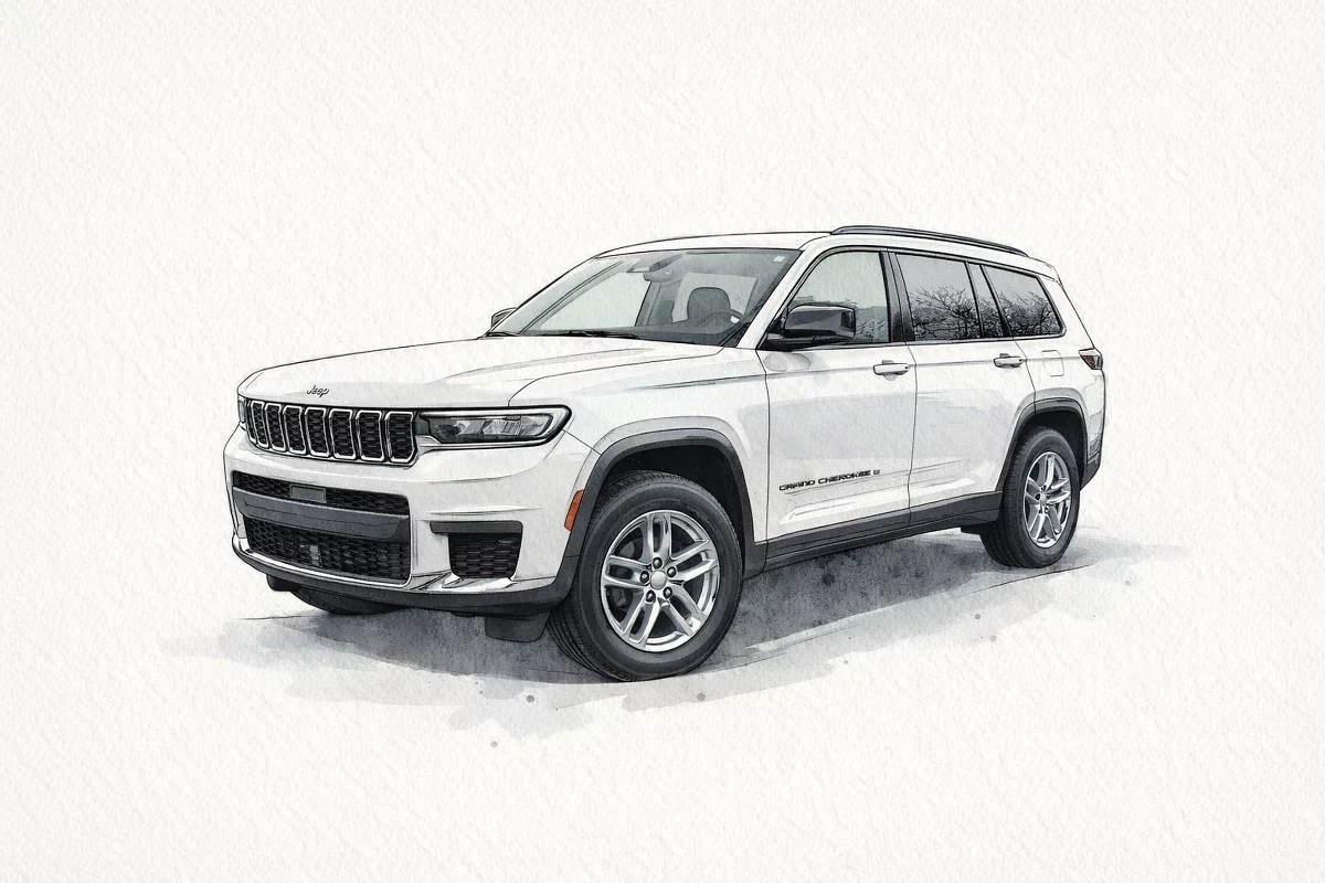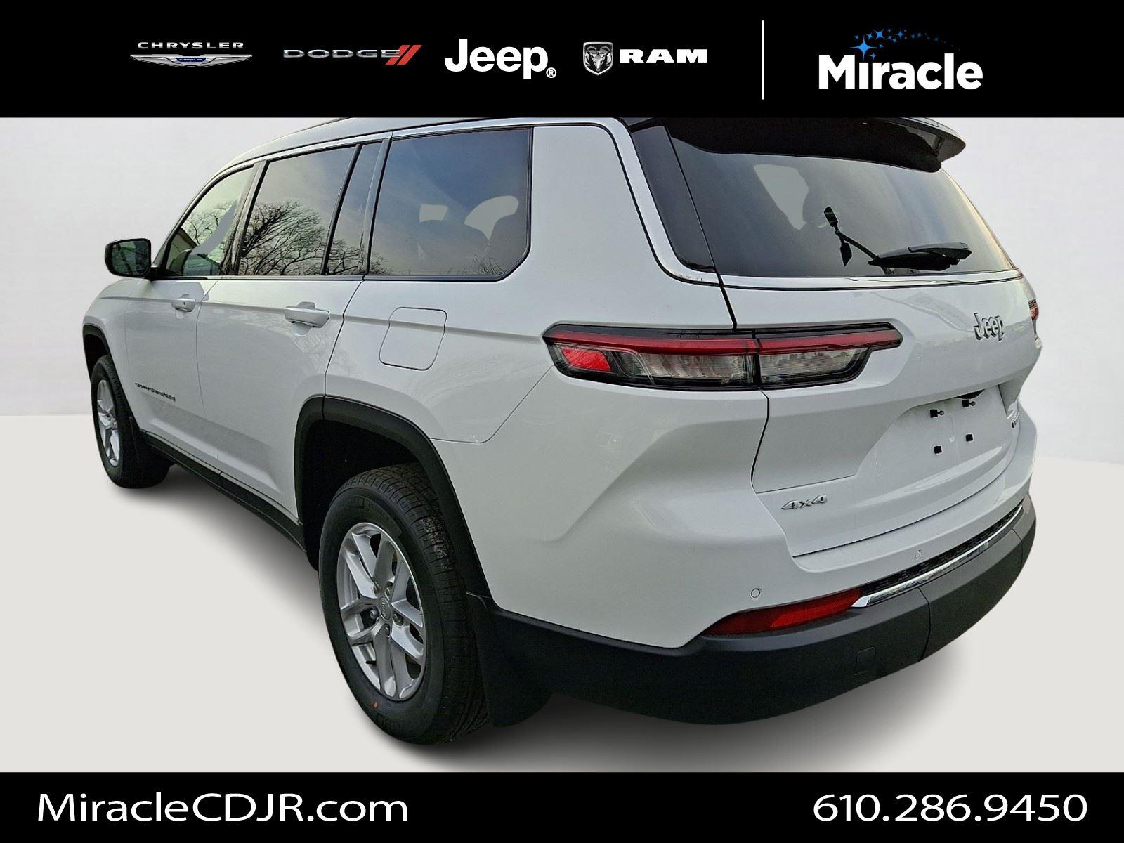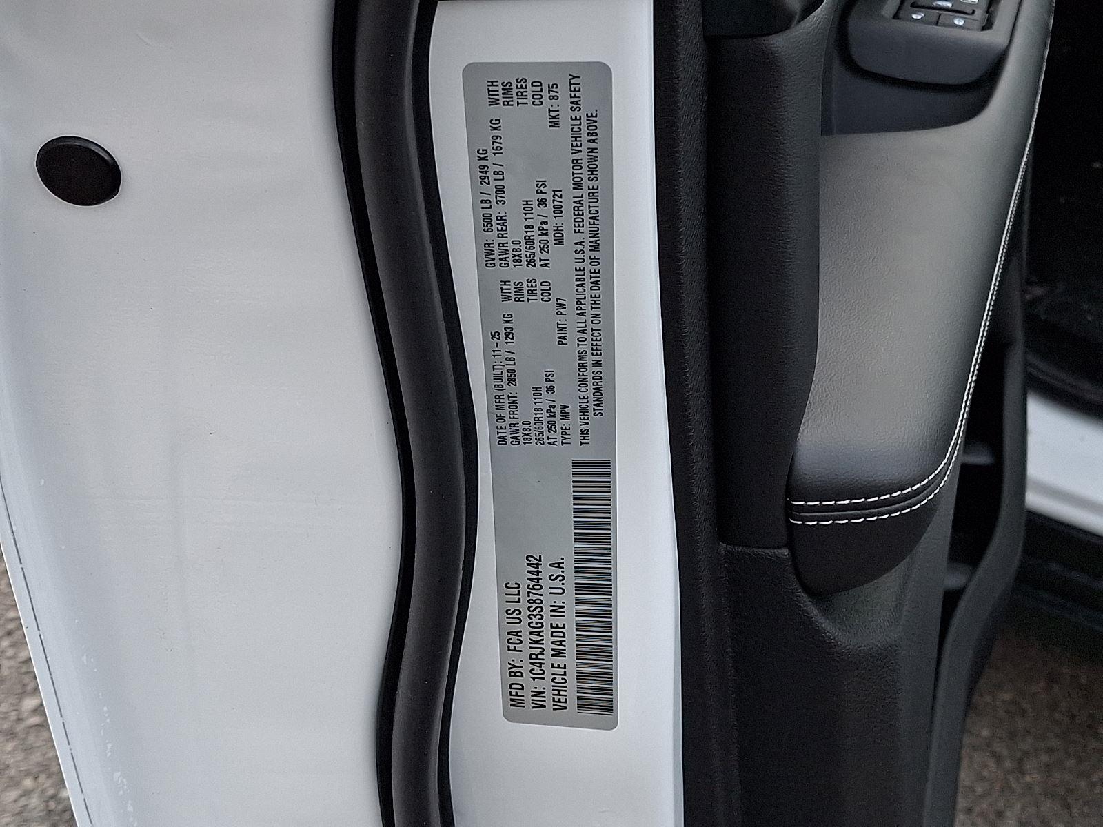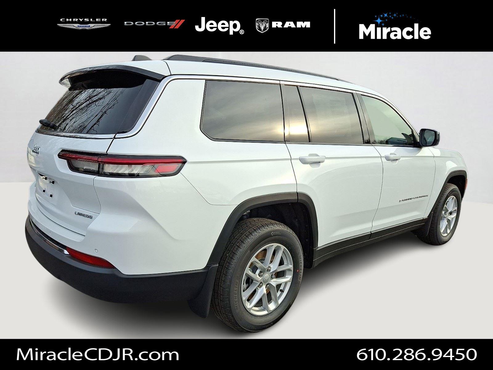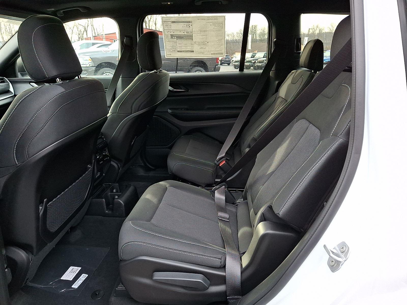 Meet the 2025 Jeep Grand Cherokee L Laredo — striking in White with a refined Black interior. Rugged 4WD confidence meets everyday comfort: seating for six, power-adjustable driver’s seat, leather-wrapped steering wheel and separate driver/front-passenger climate controls for personalized comfort. Safety-first tech like ABS, traction and stability control, a full complement of airbags, vehicle anti-theft and tire pressure monitoring keeps you secure, while keyless entry and remote start with climate control add everyday convenience. Rugged run-flat 265/60R18 tires, automatic headlights and heated mirrors finish the package — all backed by a 36/36k basic and 60/60k powertrain warranty. Ready to take it for a test drive?