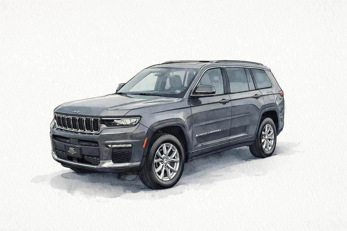 Meet the 2023 Jeep Grand Cherokee L Limited in striking Gray with a Black leather interior — a refined 3-row SUV that seats six comfortably and blends capability with luxury. Equipped with full-time 4WD, advanced braking and traction tech (ABS, electronic brake assist, limited‑slip/locking differentials, traction and stability control), it’s ready for whatever the road — or weather — delivers. Inside you’ll find heated leather front seats with power adjustments and lumbar support, a heated leather steering wheel, dual-zone climate with remote start, keyless entry, and a premium audio setup with subwoofer for enjoyable drives. Safety is comprehensive: driver/passenger/side/head‑protection airbags, child door locks, vehicle anti‑theft systems and parking aids. Backed by a 3-year/36,000-mile basic warranty and 5-year/60,000-mile powertrain warranty, this Grand Cherokee L Limited is a smart, comfortable, and capable choice — stop by for a test drive today.