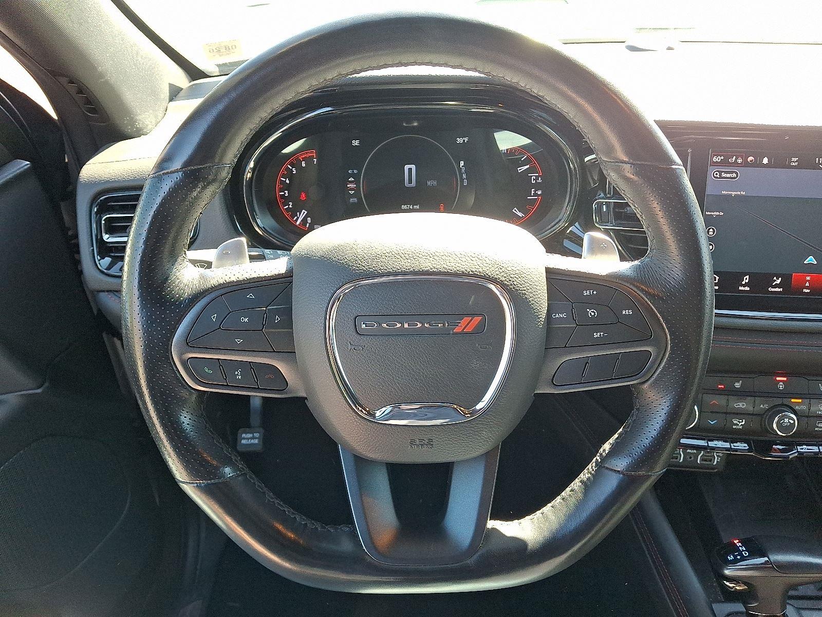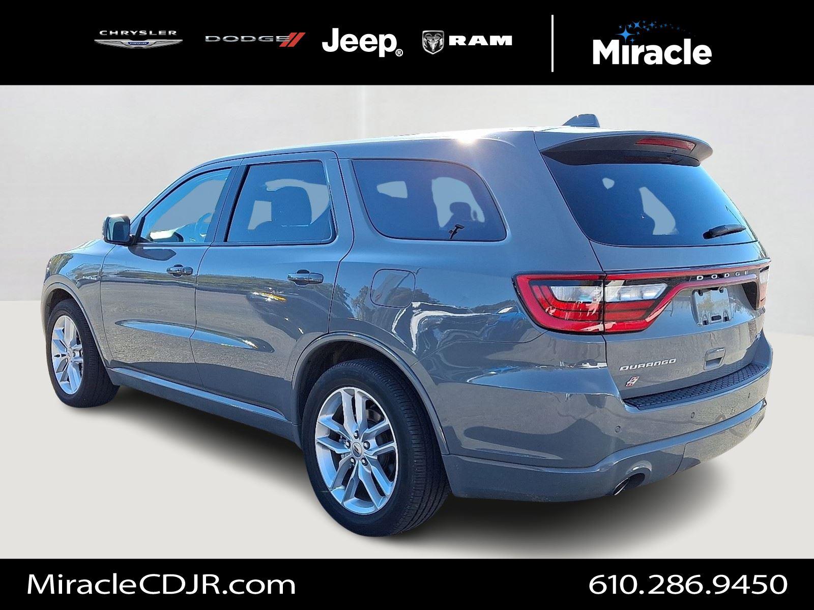 Turn heads in this 2022 Dodge Durango R/T — sleek Gray exterior with a Black leather interior and seating for seven. Loaded for comfort and control: heated/cooled leather front seats with multi-adjustable power and lumbar support, heated leather steering wheel, dual-zone climate controls, power sunroof, premium audio with subwoofer and navigation, plus alloy 20" wheels. Drive with confidence thanks to standard AWD, ABS, traction and stability control, full airbag protection and vehicle anti-theft features — plus keyless entry and remote start. Backed by factory warranties (36/36 basic, 60/60 powertrain, 60-month rust). Stop by or call today to take it for a test drive.