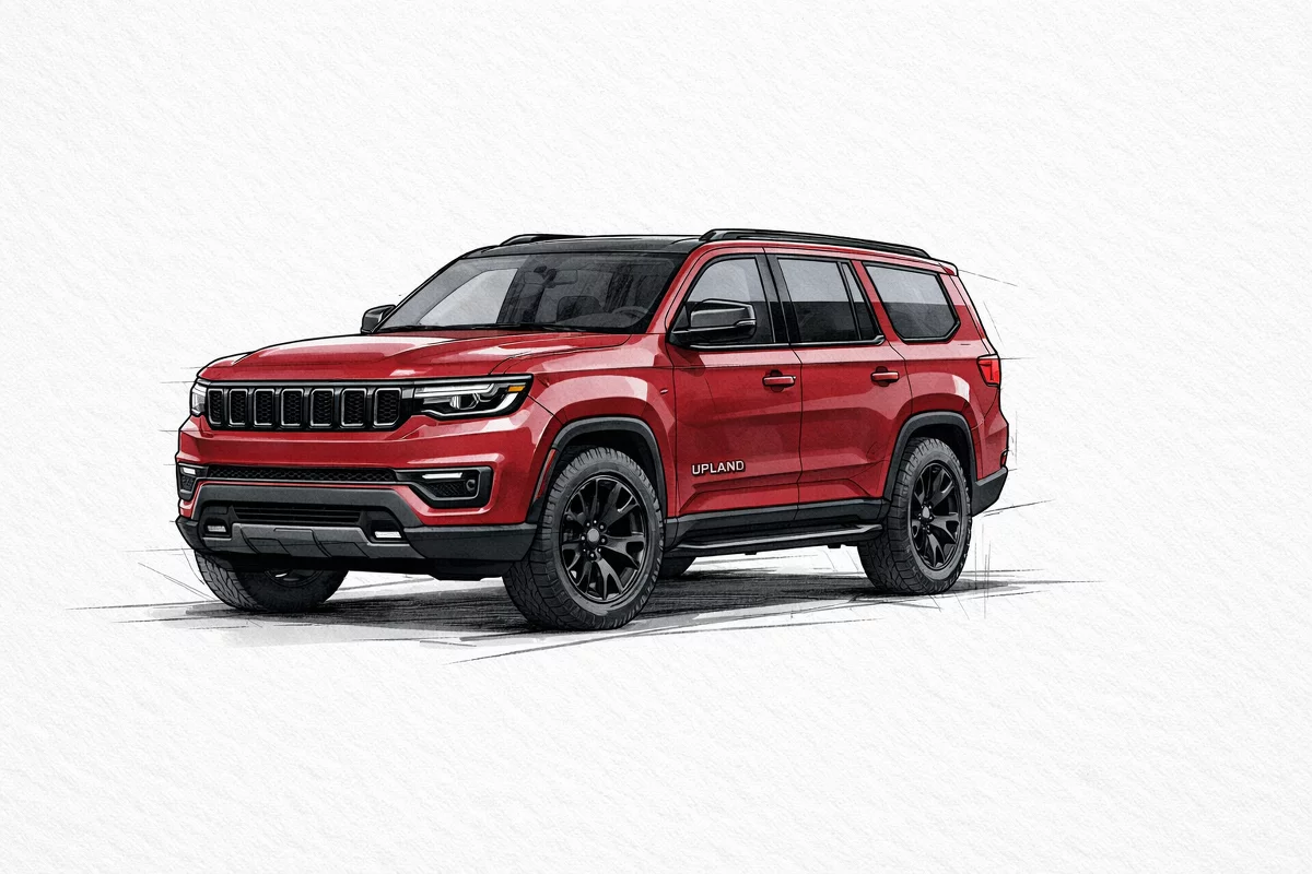 Turn heads in the 2026 Jeep Grand Wagoneer Upland — a bold Red exterior wrapped around a refined Black interior. This full‑size SUV blends rugged, off‑road‑inspired Upland styling with premium comfort: spacious three‑row seating, intuitive infotainment and advanced safety tech, plus capable towing and available 4x4 performance. Backed by comprehensive basic, powertrain and rust warranties for added peace of mind. Ready for a test drive? Come see it today and take the wheel.