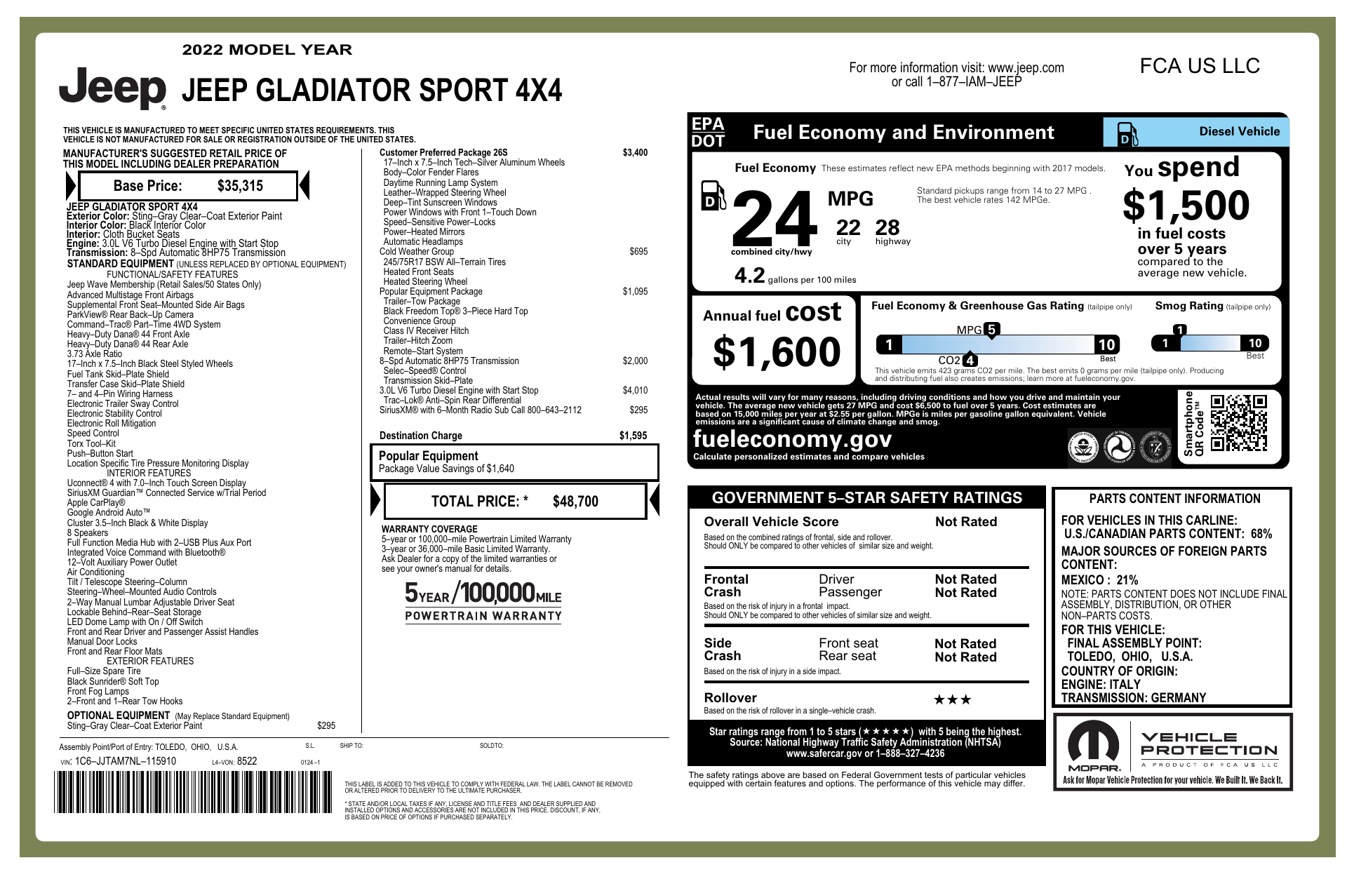 Single-owner vehicle with just 35,364 miles — a low-mile example that promises years of dependable driving and strong resale potential. With one careful owner and that modest mileage, it's a smart, confidence-inspiring choice for buyers who want immediate enjoyment and long-term value.