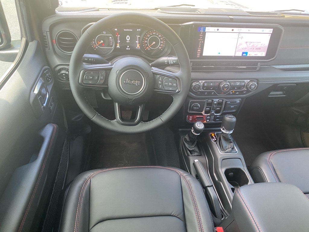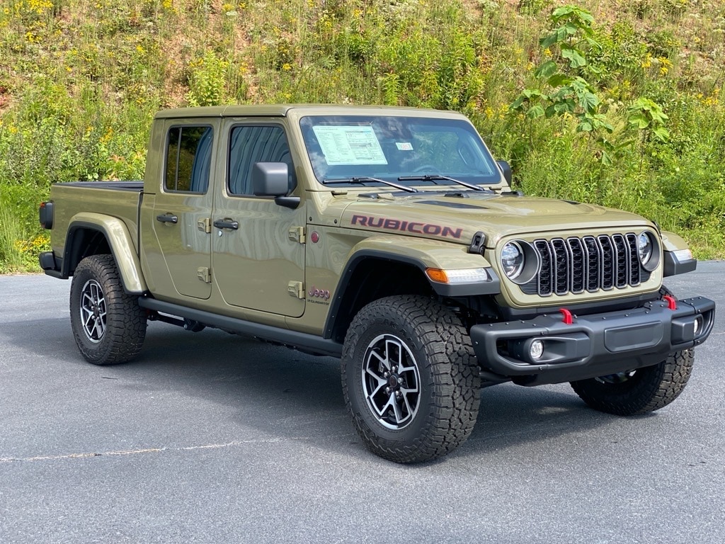 2025 Jeep Gladiator Rubicon — Brown: rugged capability meets everyday comfort. With true 4WD, locking and limited-slip differentials, LT285/70R17 off‑road tires, 10" ground clearance and full‑size spare, this Gladiator is ready for trails and work. Inside you’ll find heated, power‑adjustable front seats with lumbar support, leather steering wheel, intuitive navigation and remote start with climate control plus keyless entry. Top‑tier safety features include stability control, ABS, multiple airbags and vehicle anti‑theft protection. Backed by a 3/36 basic and 5/60 powertrain warranty — stop in today and take this Rubicon for a test drive.