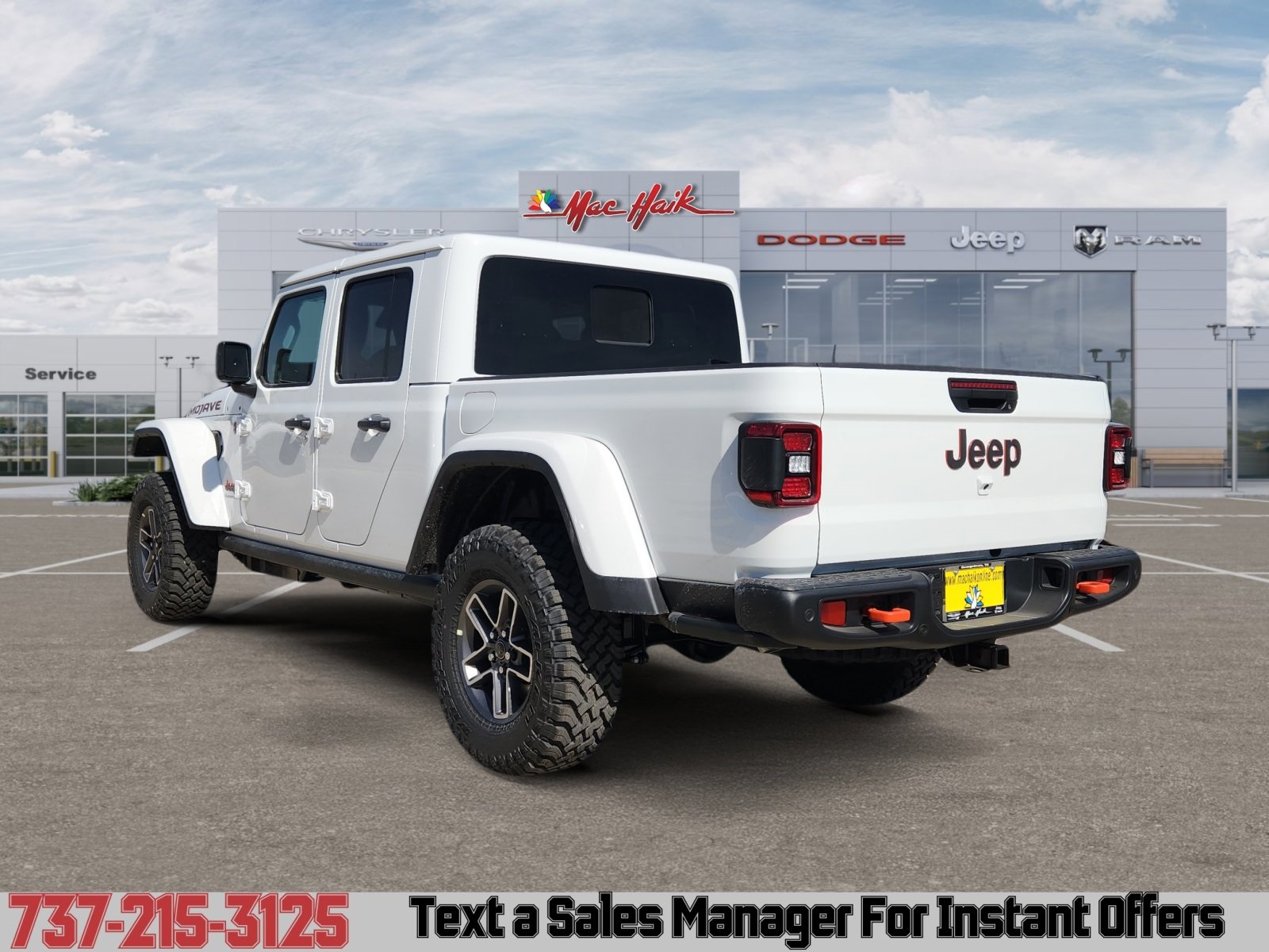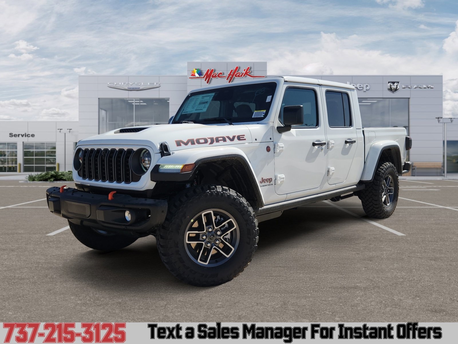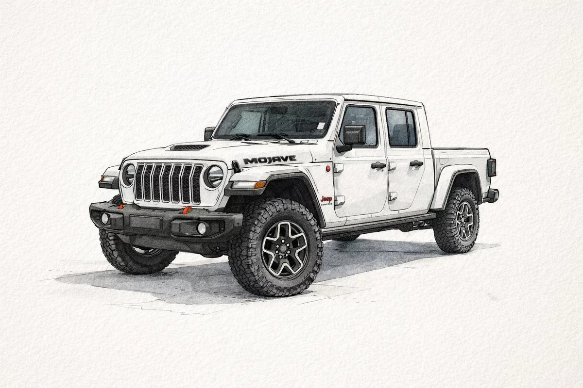 Meet the 2026 Jeep Gladiator Mojave — bold in White with a sleek Black interior. Built to dominate desert trails and handle daily work, it pairs desert-tuned FOX shocks and reinforced off-road suspension with full 4x4 capability, a versatile pickup bed and iconic removable top/doors for open-air freedom. Durable, comfortable and ready for adventure — backed by Jeep’s factory basic, powertrain and rust-through warranties for added peace of mind. Stop by for a test drive and feel the Mojave difference.