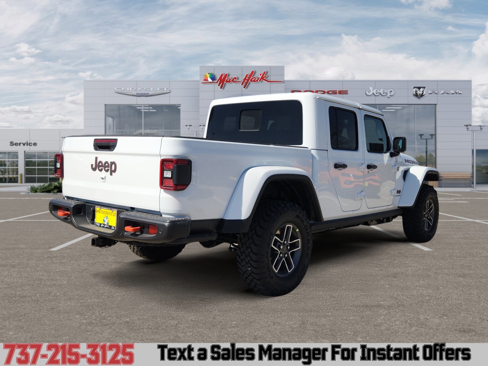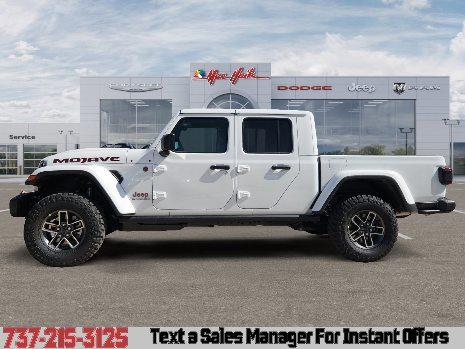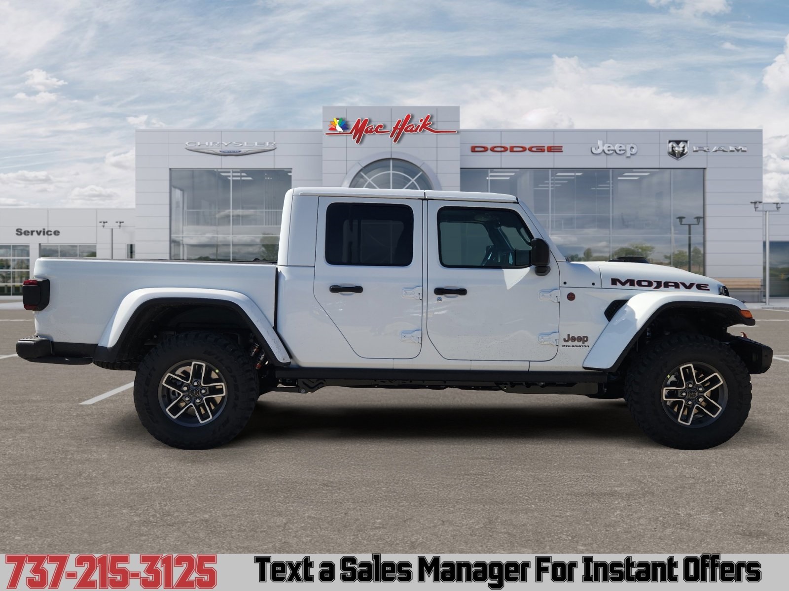 Meet the 2026 Jeep Gladiator Mojave — bold in White with a sleek Black interior. Built to dominate desert trails and handle daily work, it pairs desert-tuned FOX shocks and reinforced off-road suspension with full 4x4 capability, a versatile pickup bed and iconic removable top/doors for open-air freedom. Durable, comfortable and ready for adventure — backed by Jeep’s factory basic, powertrain and rust-through warranties for added peace of mind. Stop by for a test drive and feel the Mojave difference.