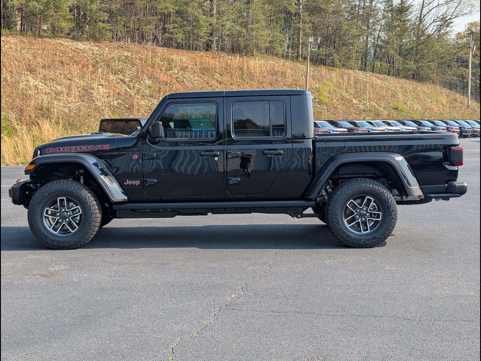 Meet the 2026 Jeep Gladiator Mojave in sleek Black — a desert-tuned pickup that blends serious off‑road capability with everyday comfort. With a reinforced frame, Mojave-tuned suspension and performance shocks, plus a rugged 4x4 system and a versatile pickup bed, it’s built to conquer high‑speed off‑road runs and still handle your daily haul. Inside, modern Uconnect infotainment, smartphone integration and comfortable seating keep you connected and comfortable on every drive. Best of all, it comes backed by basic, powertrain and rust warranties for added peace of mind — stop in today and take the Mojave for a test drive.