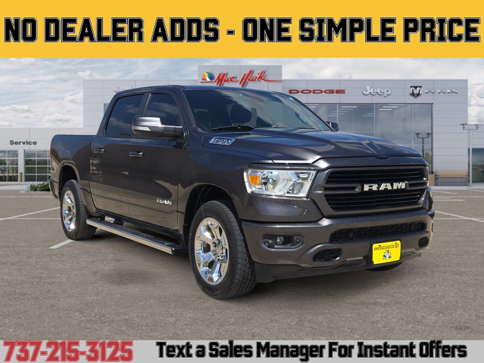 Introducing the 2020 RAM 1500 Big Horn/Lone Star in striking Gray with a sleek Black interior — rugged capability with refined comfort. This truck comes loaded with confidence-building safety (ABS, driver/front-side/passenger/side-curtain airbags, child safety locks, anti-theft), everyday convenience (cruise control, telescopic steering, power windows, fog lights, front split-bench seating for six) and tough-duty hardware (275/65R18 tires, durable suspension and four-wheel ABS with disc brakes). With roomy interior dimensions and factory coverage — 36 months/36,000 miles basic and 60 months/60,000 miles powertrain plus rust protection — it’s versatile, reliable, and ready to work. Call or stop by today and let me show you why this RAM is the perfect fit.