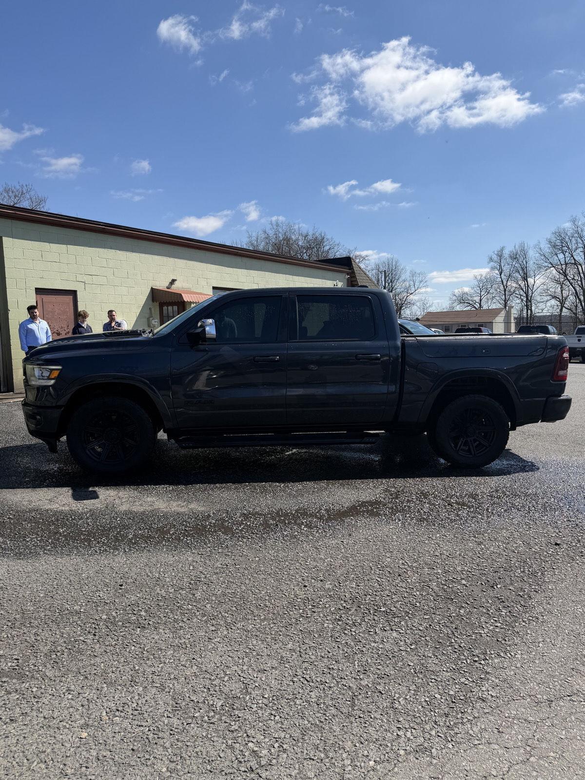 2019 RAM 1500 Laramie — Gray exterior, Black interior.