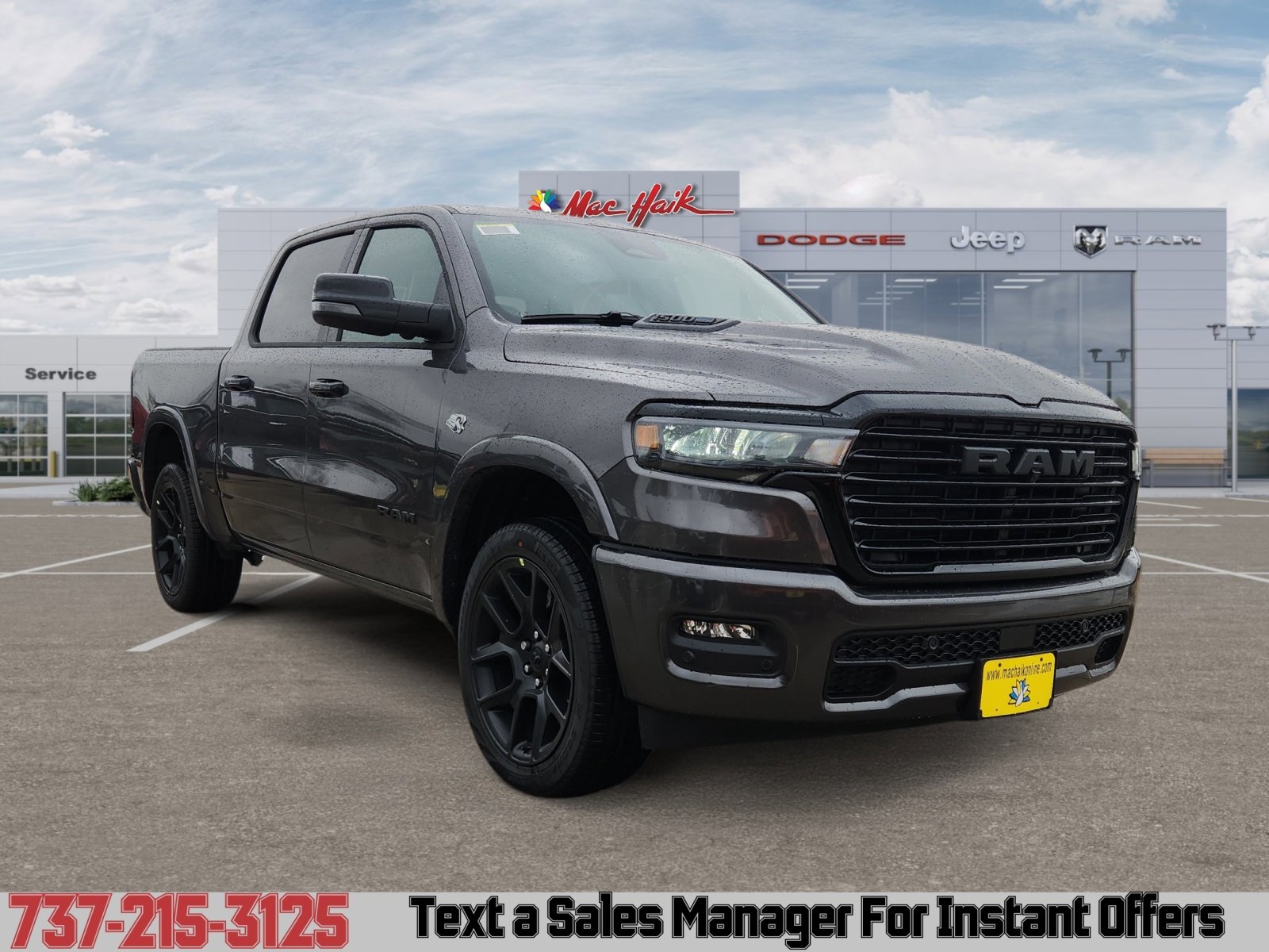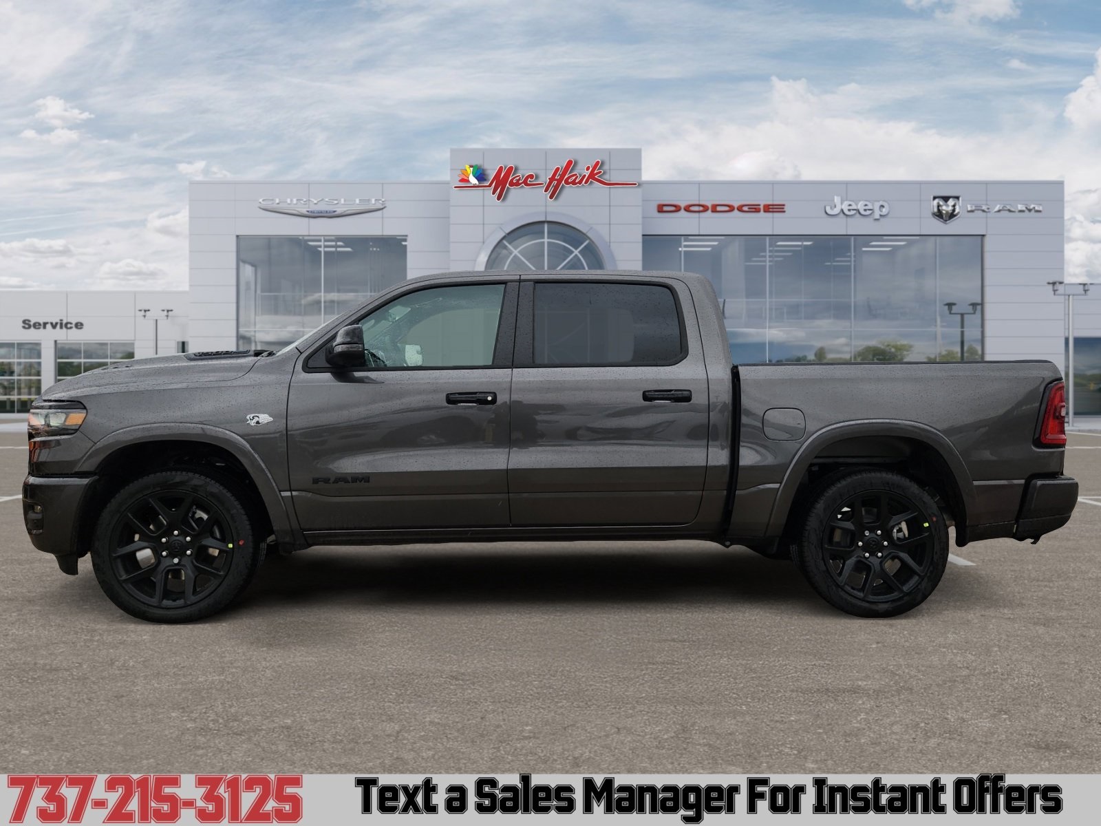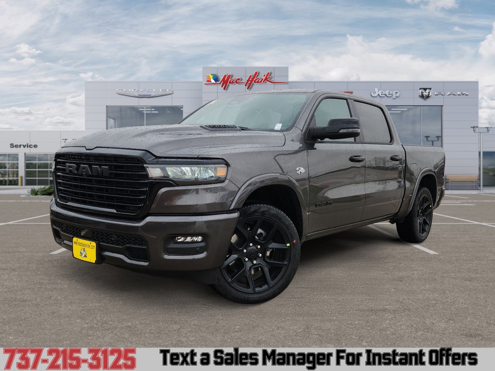 Meet the 2026 RAM 1500 Laramie — Gray exterior, Black leather interior: the perfect blend of luxury and capability. With full-time 4WD, 275/55R20 run‑flat tires and a rugged suspension, this truck is built to perform; inside you’ll find heated leather seats, heated leather steering wheel, power multi-adjustable seats with lumbar support and dual-zone climate via remote start for comfort on every drive. Safety is comprehensive: ABS, traction and stability control, multiple front and side airbags, and vehicle anti-theft systems give you confidence on the road. Roomy five-passenger interior and industry-leading peace of mind with a 10-year/100,000-mile powertrain warranty. Ready to see it and take it for a test drive today?