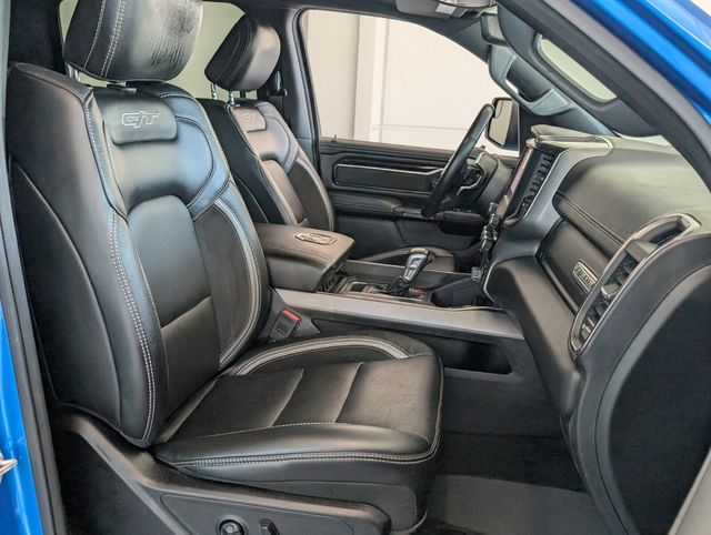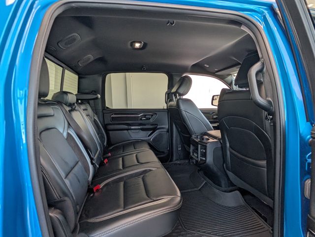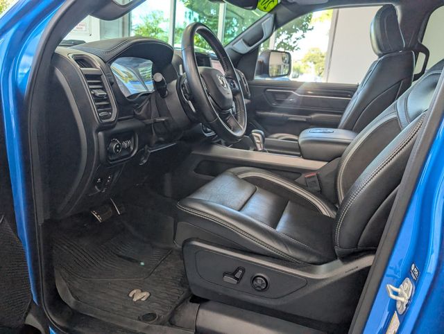 Turn heads in this striking Blue 2022 RAM 1500 Rebel with a premium Black leather interior — built to perform and ready for adventure. Rugged 4WD, locking differential, skid plate and LT275/70R18 alloy wheels give you confidence off-road; while creature comforts like heated/ventilated power leather seats with memory and lumbar, heated leather steering wheel, power sunroof and upgraded navigation with subwoofer keep every drive refined. Safety and convenience are covered too: ABS, traction and stability control, full airbag protection, keyless entry with remote start, rain‑sensing wipers, sliding rear window and an alarm/anti‑theft package. Backed by a 36‑month/36,000‑mile basic warranty, 60‑month/60,000‑mile powertrain and 60‑month rust coverage — come see it today and take this Rebel for a test drive.