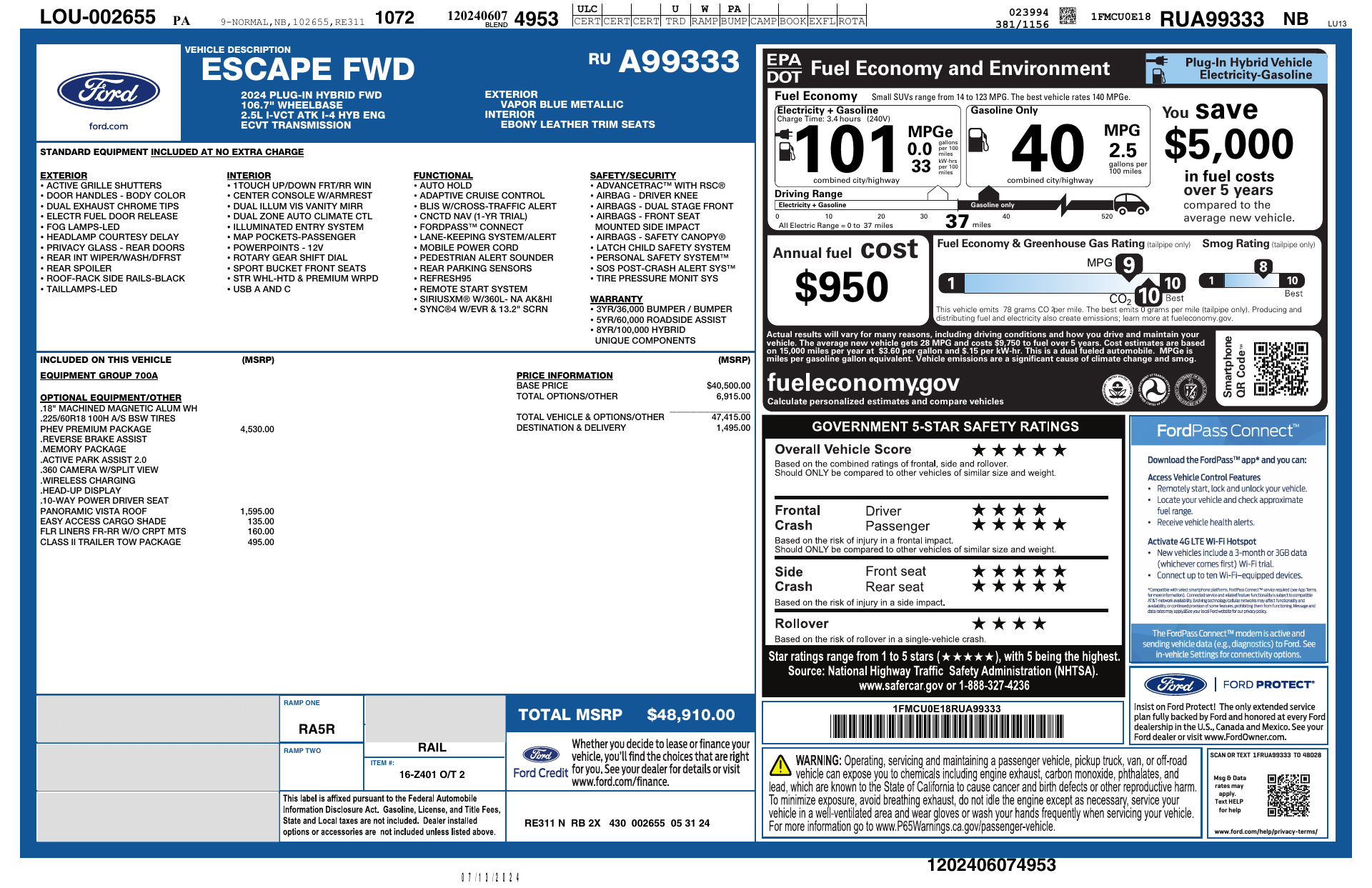 Introducing the 2024 Ford Escape Hybrid in eye-catching Blue with a classy Black leather interior — where fuel-sipping efficiency meets SUV versatility. This Escape comes ready for any road with AWD, ABS, traction and stability control plus locking/limited-slip differential for confident handling. Enjoy premium comfort with heated leather seats, heated leather-wrapped steering wheel, power multi-adjustable seats with lumbar and telescoping steering, plus dual-zone climate and remote start/keyless entry for instant comfort. High-tech and safe: automatic headlights, daytime running lights, electronic parking aid, tire pressure monitor, and a full complement of airbags and stability systems. Stop by today and take it for a test drive — see how the Escape Hybrid delivers style, comfort, and capability in one package.