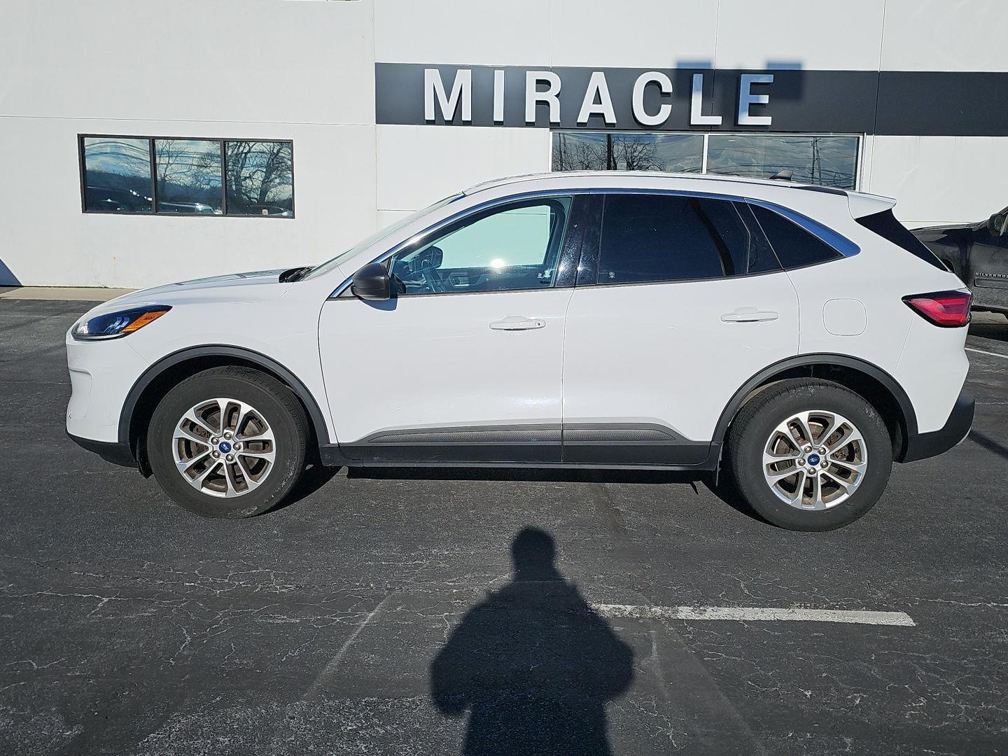 Meet the 2022 Ford Escape SE Hybrid in crisp White with a comfortable Gray interior — stylish, efficient, and ready for year-round driving. This well-equipped Escape pairs hybrid fuel savings with available AWD, heated front seats and heated steering wheel for cold mornings, plus keyless entry/start and remote ignition with climate control for instant comfort. Safety and confidence come standard — ABS, traction and stability control, multiple airbags and an anti-theft system — and you’ll enjoy upgraded navigation, alloy wheels and comprehensive factory warranties. Ready for a test drive? Call or stop by today and take it for a spin.