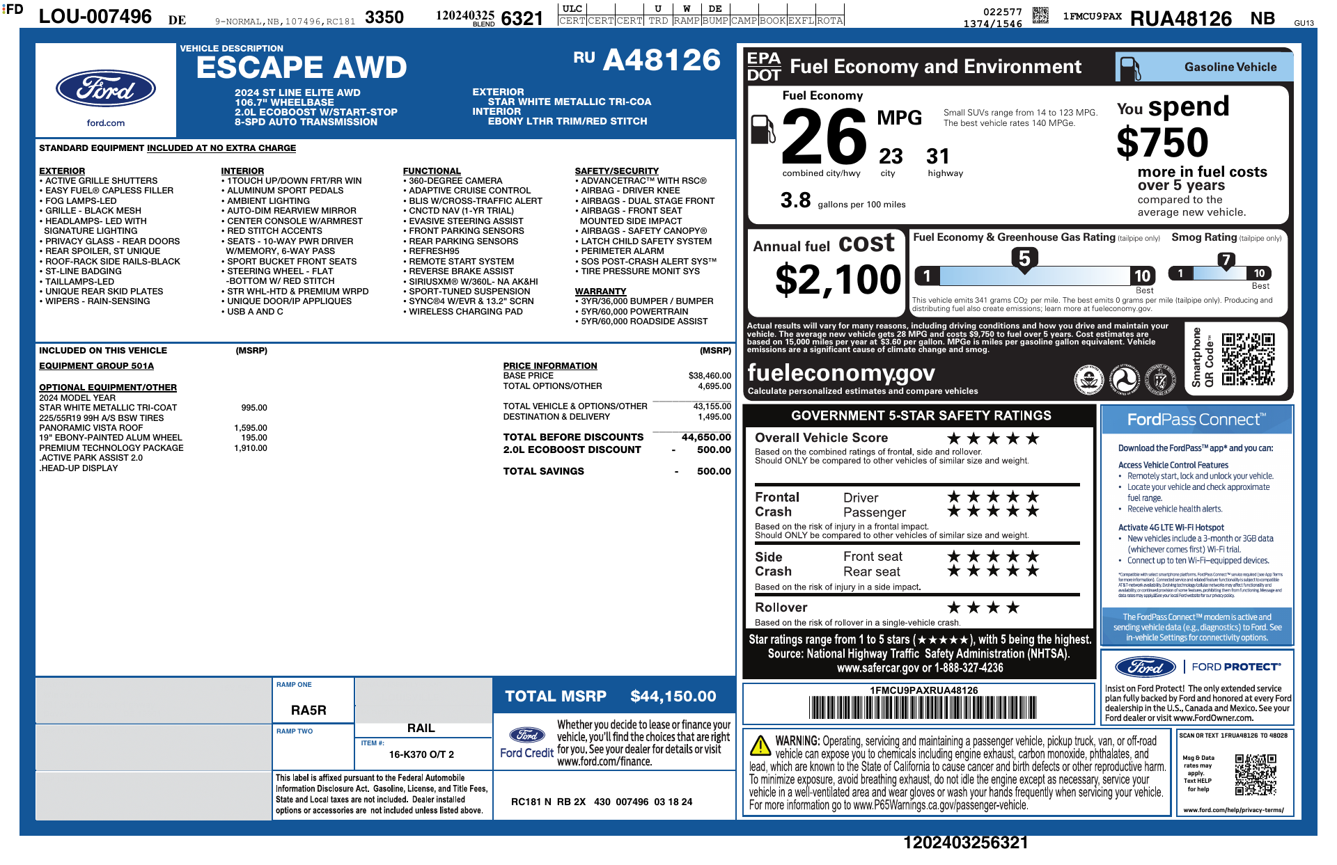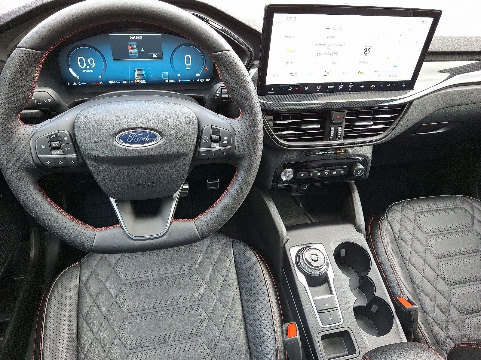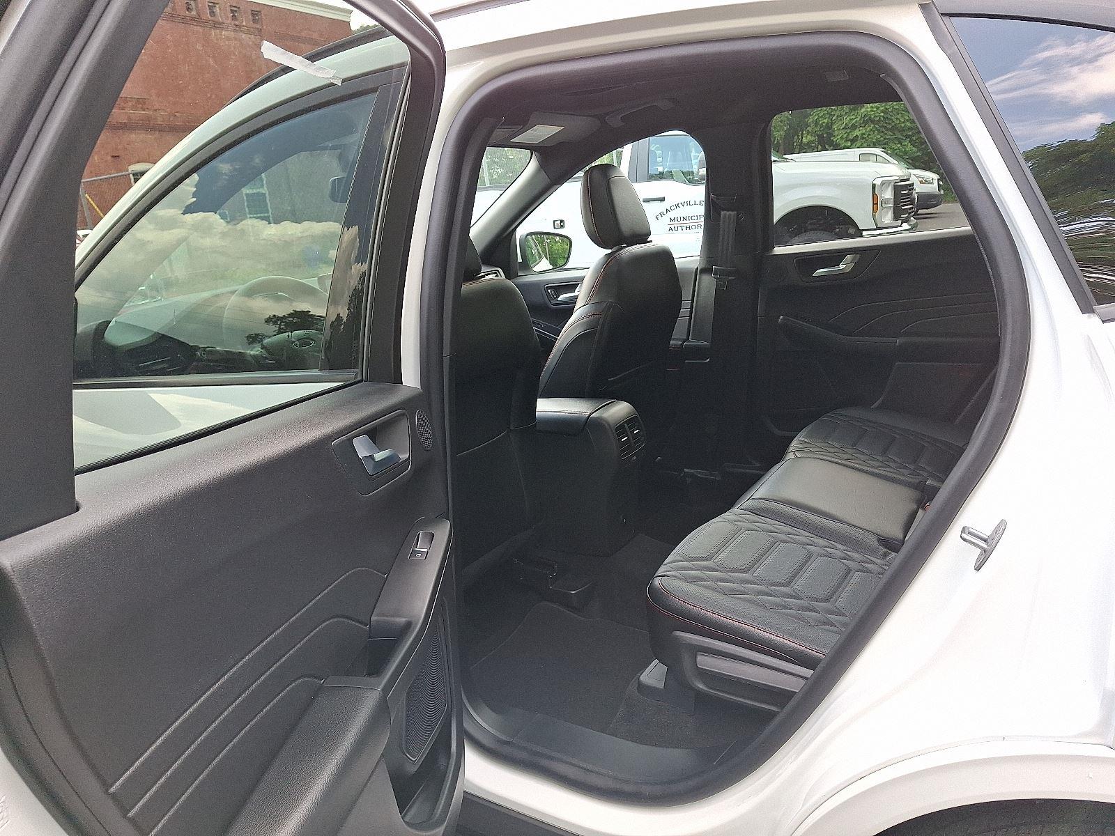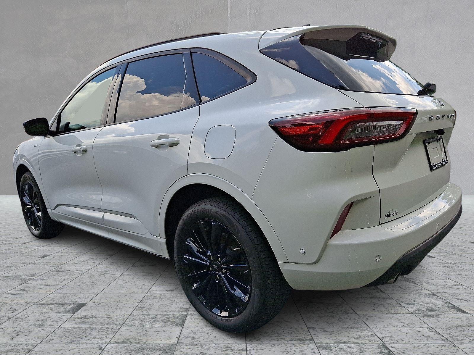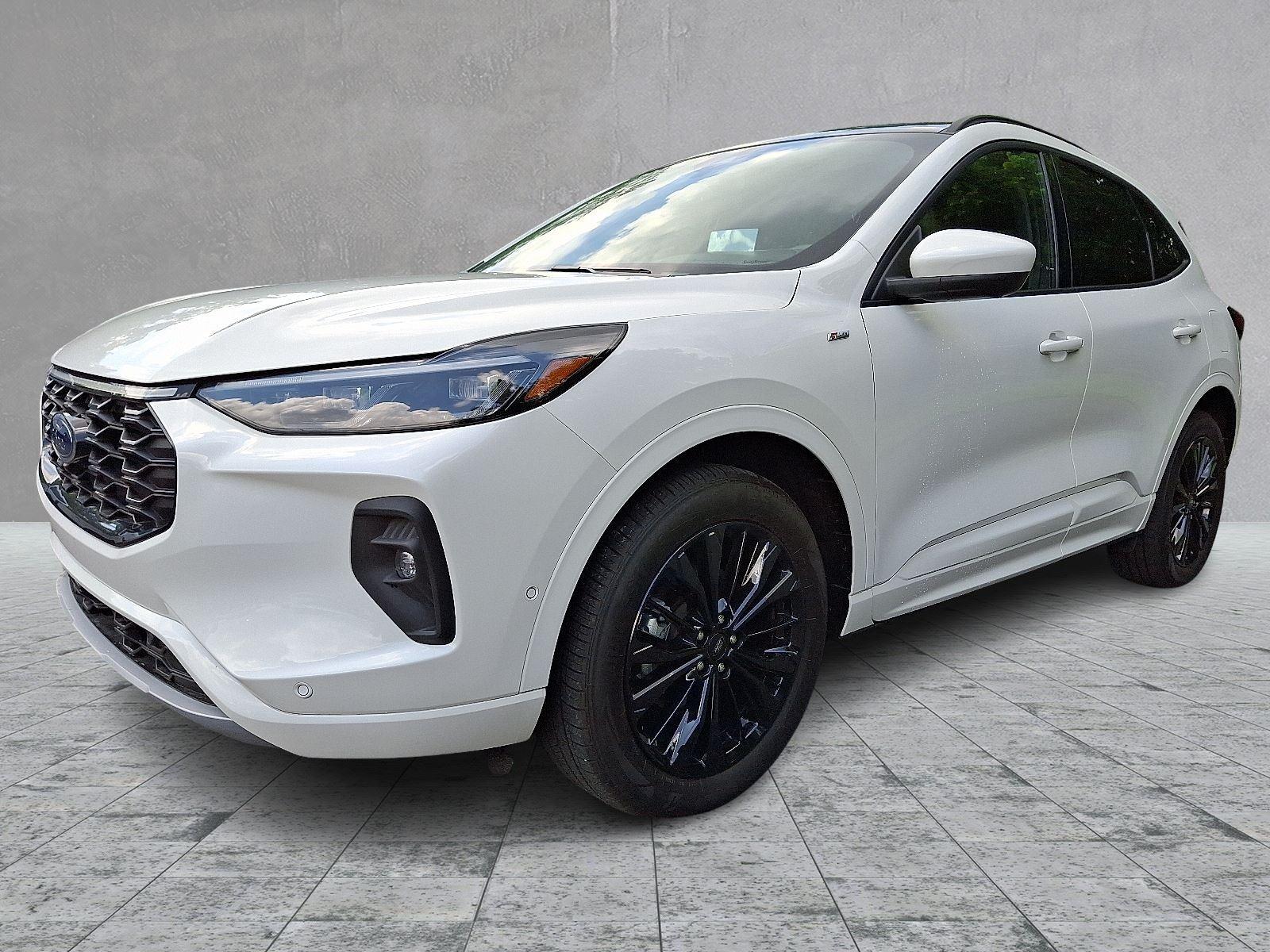 Meet the 2024 Ford Escape ST‑Line Elite Hybrid in crisp White with a sleek Black leather interior — sporty ST‑Line styling with the efficiency and smoothness of an electrified powertrain. Enjoy confident all‑weather capability with standard AWD, advanced braking and stability systems (ABS, traction control, limited‑slip and locking differentials), plus a full suite of airbags for peace of mind. Luxury touches include heated leather seats with power lumbar, heated leather steering wheel, keyless entry with remote start and climate control, premium sound with subwoofer, and convenient driver aids like electronic parking assist and adjustable pedals. Backed by a 36/36 basic warranty and 60/60 powertrain warranty, this Escape blends performance, comfort, and value — stop by for a test drive today and feel the difference.