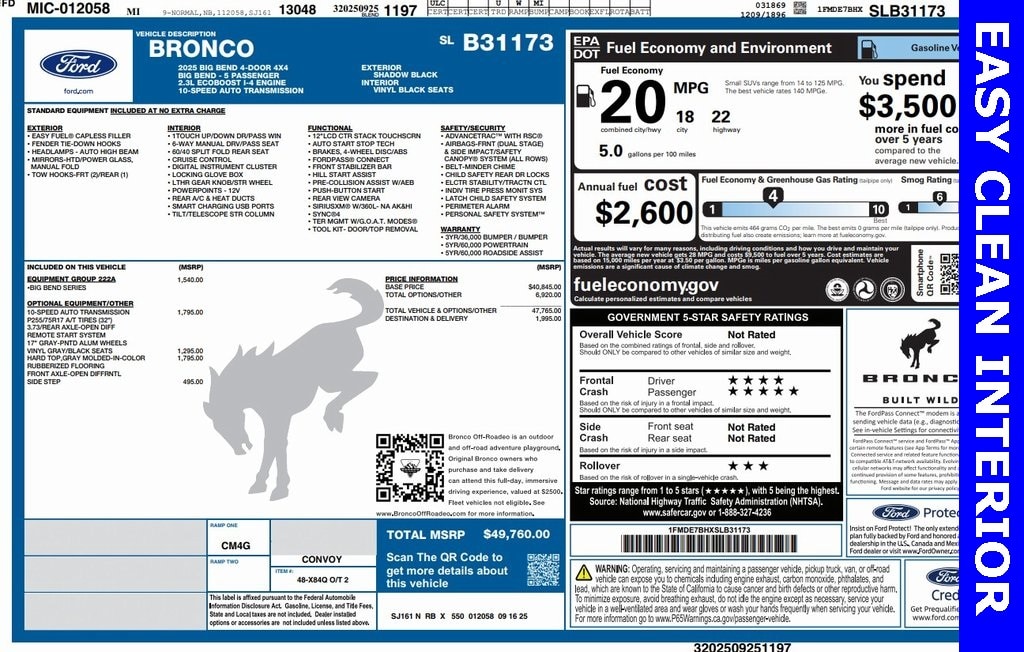 Meet the 2025 Big Bend in striking Black — rugged capability wrapped in refined comfort. With full-time 4WD, a locking differential and comprehensive traction and stability systems, it’s built to conquer tough roads with confidence. Enjoy modern convenience with keyless entry, remote start with climate control, heated front seats and a leather-wrapped steering wheel with mounted controls, plus navigation and a punchy subwoofer for every drive. Safety is thorough: multiple airbags, ABS with electronic brake assist and a sturdy chassis; alloy wheels and a full-size spare complete the package. Ready to see it in person? Come in for a test drive and experience the Big Bend for yourself.
