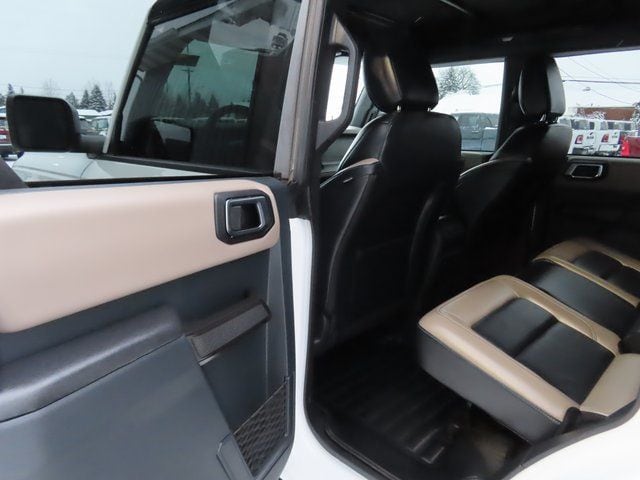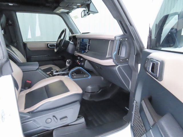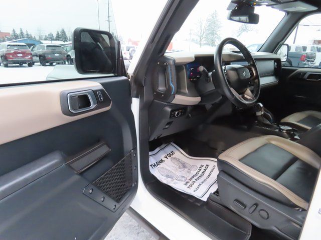 Meet the 2024 Ford Bronco Wildtrak in White — rugged, refined and ready for adventure. With true 4WD, a locking differential and 11.5" ground clearance on LT315/70R17 tires (plus a full‑size spare), this Bronco tackles off‑road terrain with confidence. Enjoy heated leather front seats, a leather steering wheel, keyless entry and remote start with climate control for everyday comfort, while stability control, ABS and multiple airbags — plus factory anti‑theft protection — keep you safe. Backed by Ford’s 3‑year/36,000‑mile basic and 5‑year/60,000‑mile powertrain warranties. Stop by today and take the Wildtrak for a test drive.