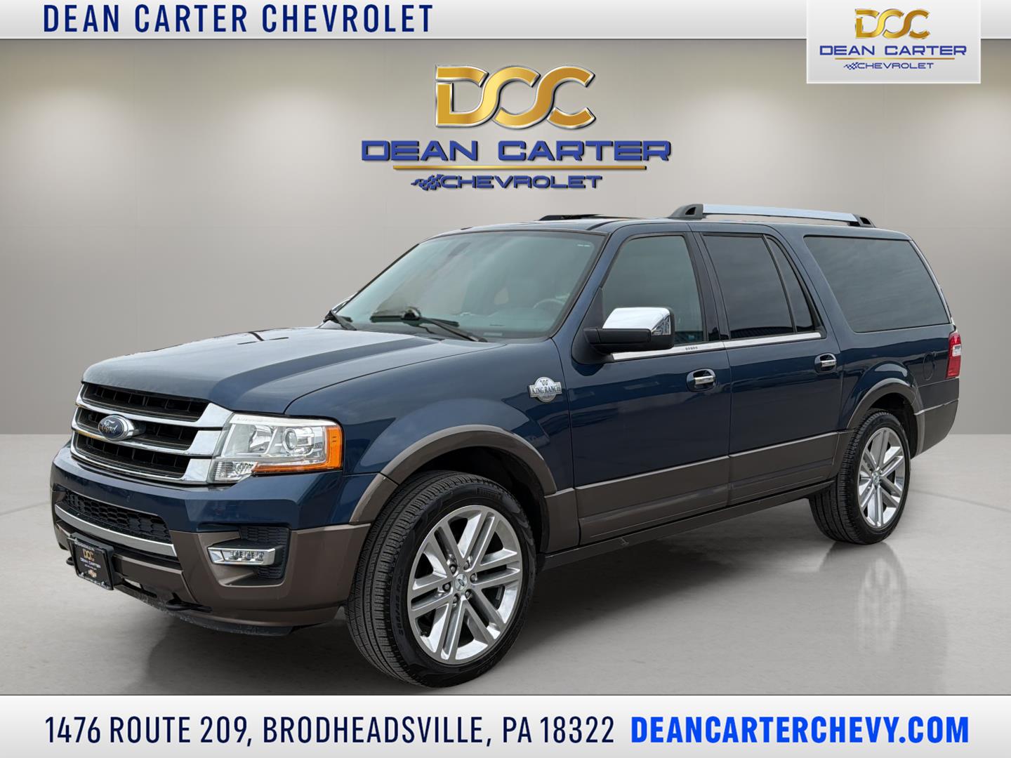 Turn heads in this 2017 Ford King Ranch in striking Blue — rugged capability wrapped in premium comfort. This King Ranch comes loaded: genuine leather trim, power-adjustable driver seat with adjustable pedals, navigation with voice-activated phone, heated exterior mirrors and auto-dimming rearview, plus running boards and 18" alloy wheels. Ready for work or play with seating for eight and an impressive 9,200 lb towing capacity, backed by ABS, traction and stability control, multiple airbags and vehicle anti-theft protection. Comes with Ford factory warranties (36/36 basic, 60/60 powertrain, 60-month rust). Stop by today for a test drive — exceptional truck, exceptional value.