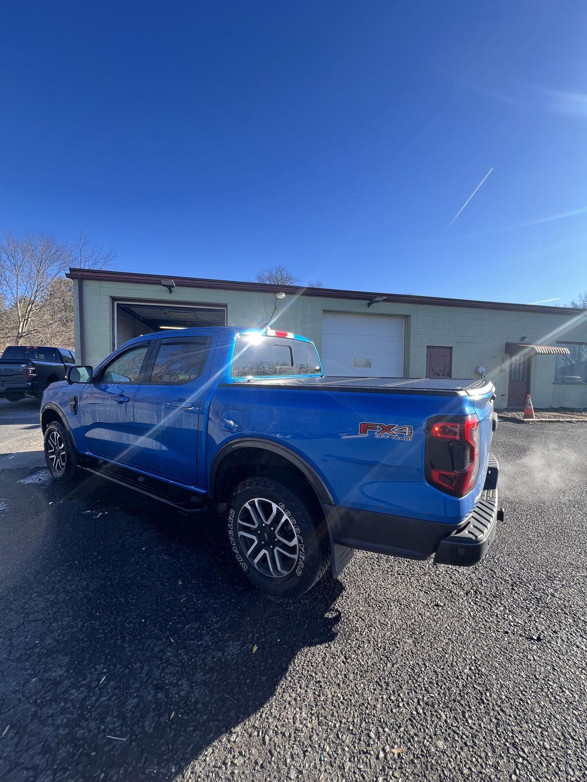 Meet the 2024 Ford Ranger Lariat in striking Blue with a refined Black leather interior — a capable 4x4 built for work, weekend and everywhere in between. With true off-road confidence from 4WD, locking/limited-slip differentials and 9.3" ground clearance, plus full-size spare and 255/65R18 tires, it’s ready for any trail. Inside you get heated leather seats, heated leather steering wheel, power-adjustable seats with lumbar support, keyless entry and remote start with climate control — plus premium sound with subwoofer for every drive. Top-tier safety tech (ABS, stability and traction control, multiple airbags, parking aid) and Ford’s solid warranties give you peace of mind — come see it and take it for a test drive today.