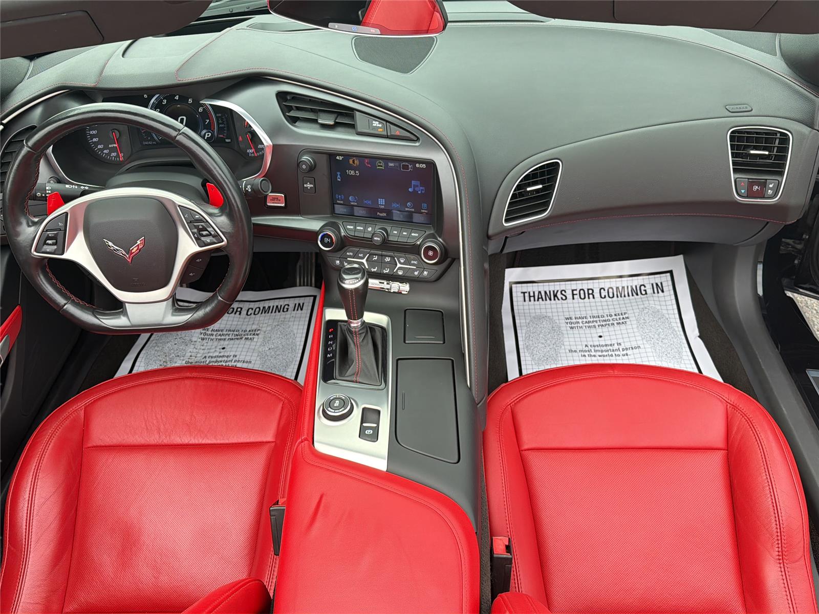 Turn heads in this 2017 Chevrolet Corvette Grand Sport 2LT — sleek Black exterior matched with a bold Red leather interior. This Grand Sport delivers performance and presence with wide P335/25r Z tires, alloy wheels, removable targa top, rear spoiler, HID headlights and a sport-tuned chassis with 4‑wheel ABS, traction control and stability system. Inside you’ll enjoy heated, multi-adjustable power seats with memory and lumbar, dual-zone climate, leather-wrapped steering wheel with controls, keyless entry/start and an upgraded tech suite with navigation, voice‑activated phone and subwoofer. Safety is covered with full airbags, anti-theft protection and TPMS, plus factory warranties (36/36 basic, 60/60 powertrain, 72/100 rust). Ready to own one? Call or stop by today for a test drive.