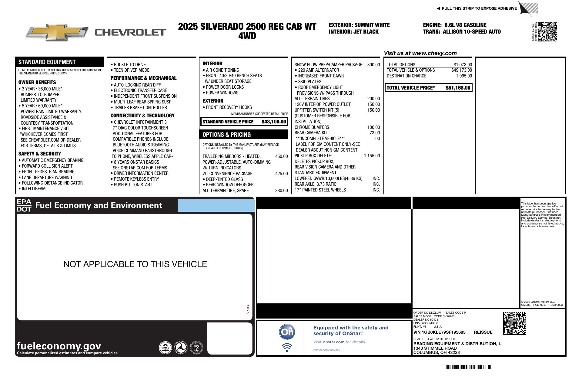 Tough, dependable and ready for work — the 2025 Chevrolet Silverado 2500 HD WT in crisp White with a Black interior. Built for the jobsite with standard 4WD, locking differential, heavy-duty torsion-bar front and live rear suspension, LT245/75R17 tires and a full‑size spare. Confidence on the road comes from ABS, traction control, vehicle stability and a full complement of airbags, while driver convenience includes keyless entry, remote start with climate control, power windows, heated mirrors and automatic headlights. Backed by GM’s 3/36 basic, 5/60 powertrain and 6/100k rust warranties — stop by today and take this workhorse for a test drive.