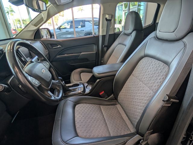 Turn heads in this 2022 Chevrolet Colorado Z71 — finished in sleek Black with a Black interior and built to work and play. The Z71 off‑road package brings true capability: 4WD, locking differential, skid plates, fog lamps and 17" alloy wheels wrapped in 255/65R17 rubber with a generous 8.3" ground clearance. Inside, enjoy heated front seats, a heated leather steering wheel, driver power seat with lumbar and memory, remote start with climate control and convenient keyless entry. Tech and safety are well covered with navigation, stability/traction control, ABS, multiple airbags, tire pressure monitoring and an electrochromic mirror with rear defogger. Backed by Chevrolet’s factory warranties (36/36k basic, 60/60k powertrain, 72/100k rust), this Colorado Z71 is ready for adventure — come see it and take it for a test drive today.