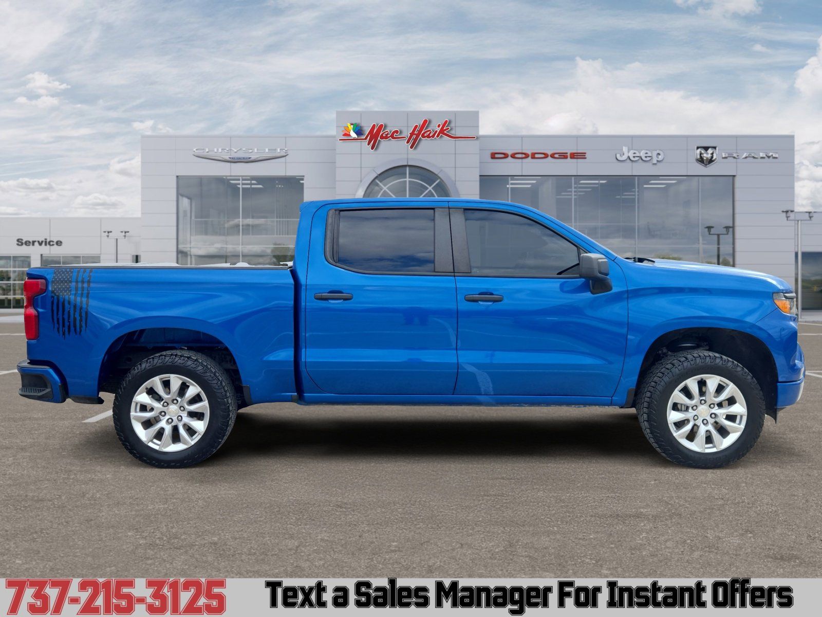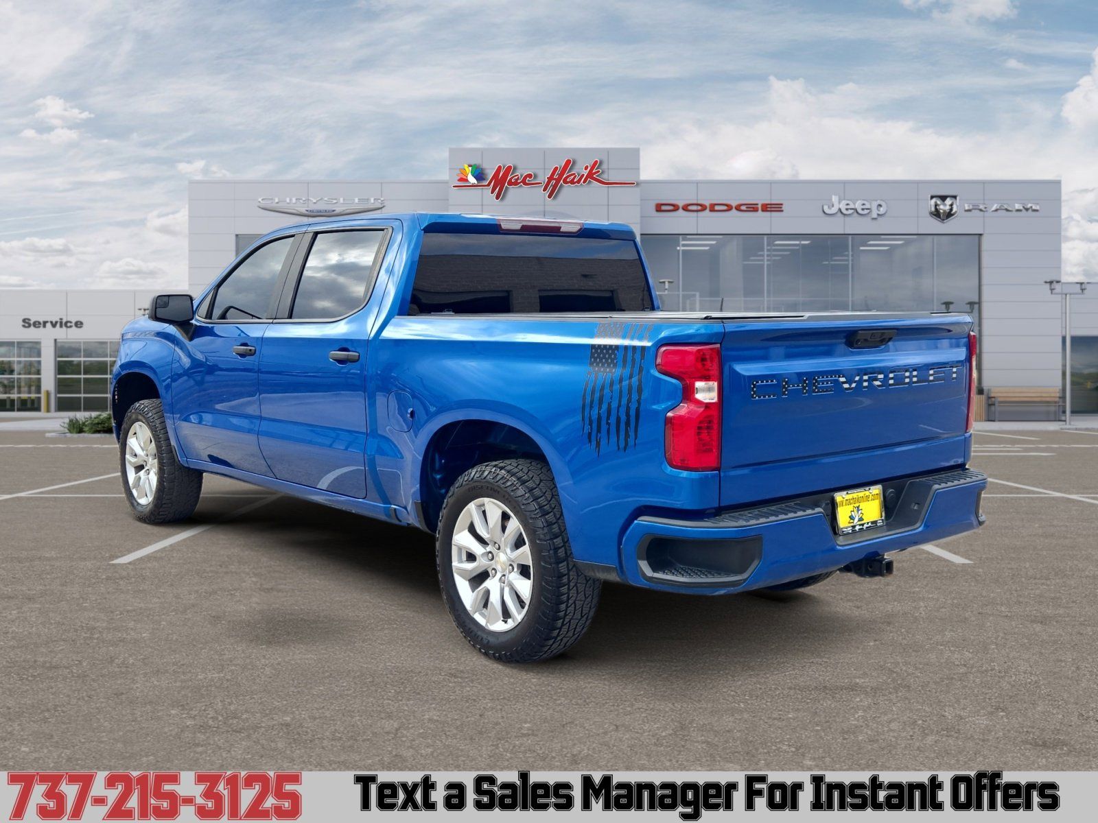 Turn heads in this Blue-on-Black 2022 Chevrolet Silverado 1500 Custom — a tough, capable truck built for work and weekend play. With full-time 4WD, locking/limited-slip differentials, ABS and stability/traction control plus rugged 275/60R20 tires, it’s ready for rough roads and heavy loads. Enjoy premium comfort and convenience with leather heated front seats, driver/passenger power adjustments, a heated leather steering wheel, dual-zone climate control, keyless entry and remote start. Safety and peace of mind come standard — multiple airbags, vehicle anti-theft features, electronic parking aid — plus Chevrolet’s strong basic, powertrain and rust warranties. Ready to drive? Call or stop by today and make this Silverado yours.