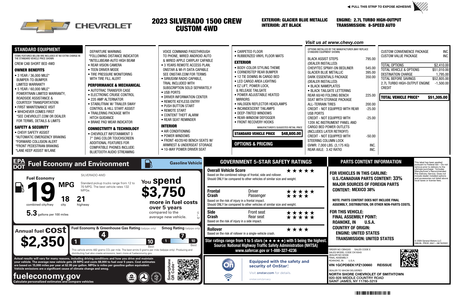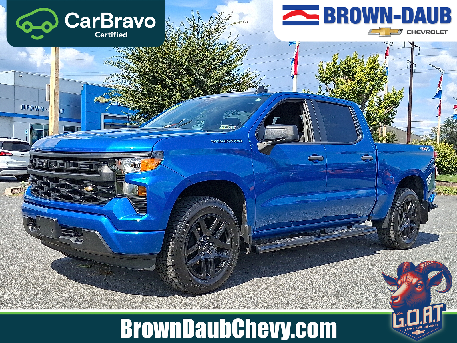 Ready to work — and look good doing it. This 2023 Chevrolet Silverado 1500 Custom in striking Blue with a Black leather interior pairs rugged capability with everyday comfort. It comes standard with 4WD, locking/limited‑slip differentials, ABS and full stability/traction controls, plus a vehicle anti‑theft system for peace of mind. Comfort and convenience include heated leather seats and steering wheel, power multi‑adjustable seats with lumbar, keyless entry and remote start with climate control, steering‑wheel controls, and a premium subwoofer. Practical touches like 20" tires with a full‑size spare, generous cabin room for six and comprehensive warranties (3yr/36k basic, 5yr/60k powertrain, 6yr/100k rust) round it out. Want to see it in person? Call or stop by today to schedule your test drive.