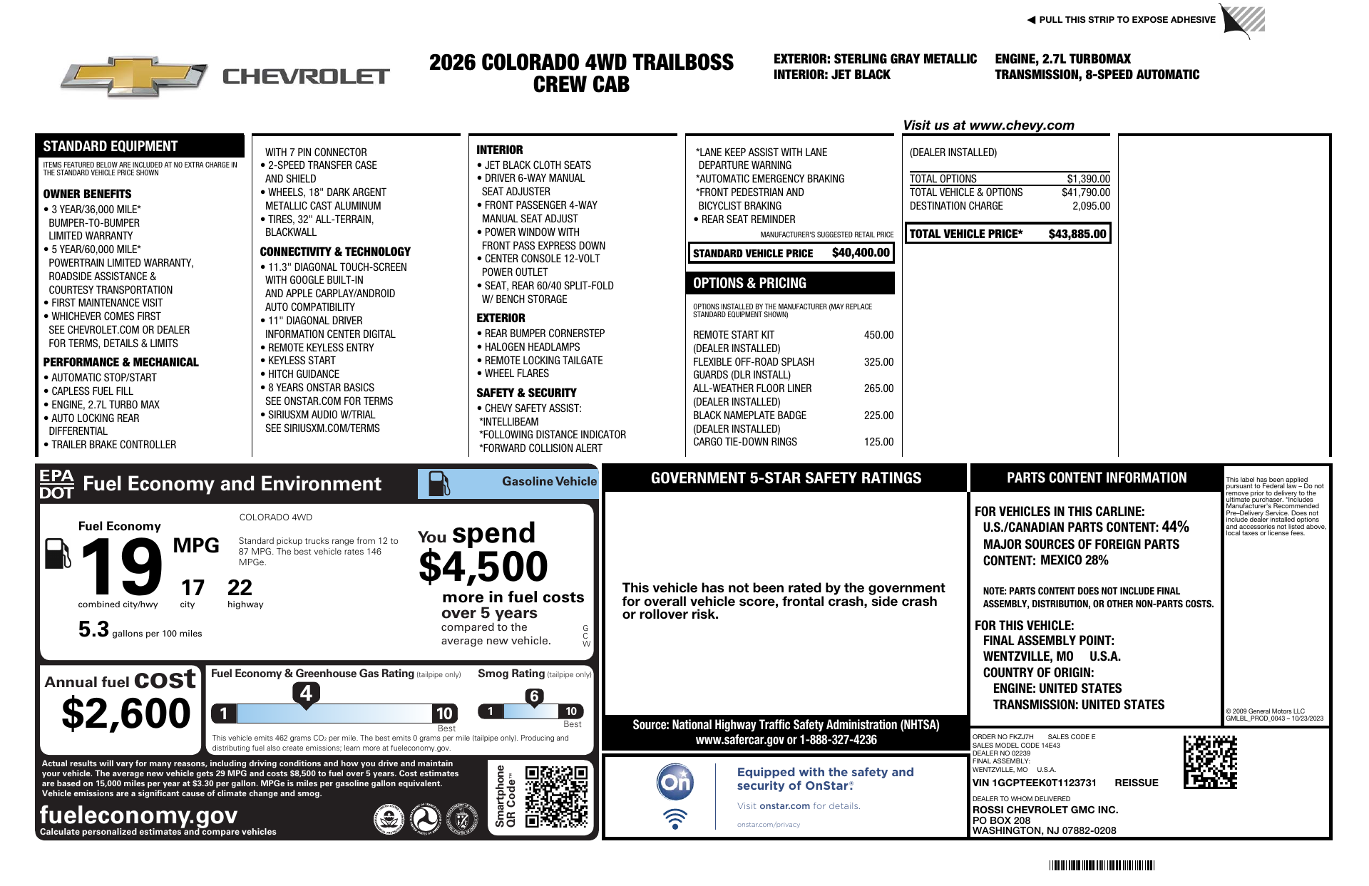 Meet the 2026 Chevrolet Colorado Trail Boss — bold Gray exterior, sharp Black interior — built to handle the daily grind and weekend trails. Trail Boss-tuned off‑road suspension, skid-plate protection and all‑terrain rubber deliver confident capability, while 4x4 readiness, serious towing potential and rugged utility keep it practical. Inside you get a driver-focused cabin with modern infotainment and advanced safety tech for comfort and convenience. Backed by Chevrolet’s basic, powertrain and rust warranties — ask me for the exact coverage — this Colorado Trail Boss is ready when you are.