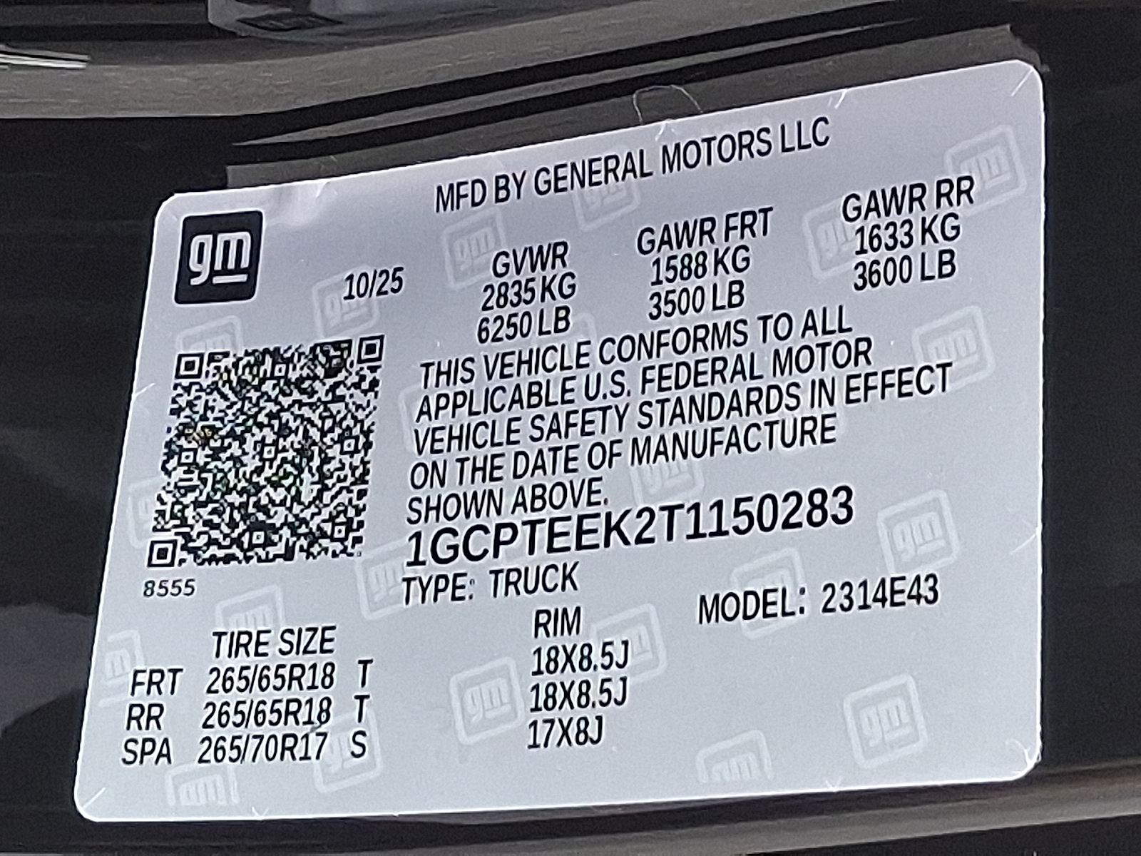 VIN: 1GCPTEEK2T1150283