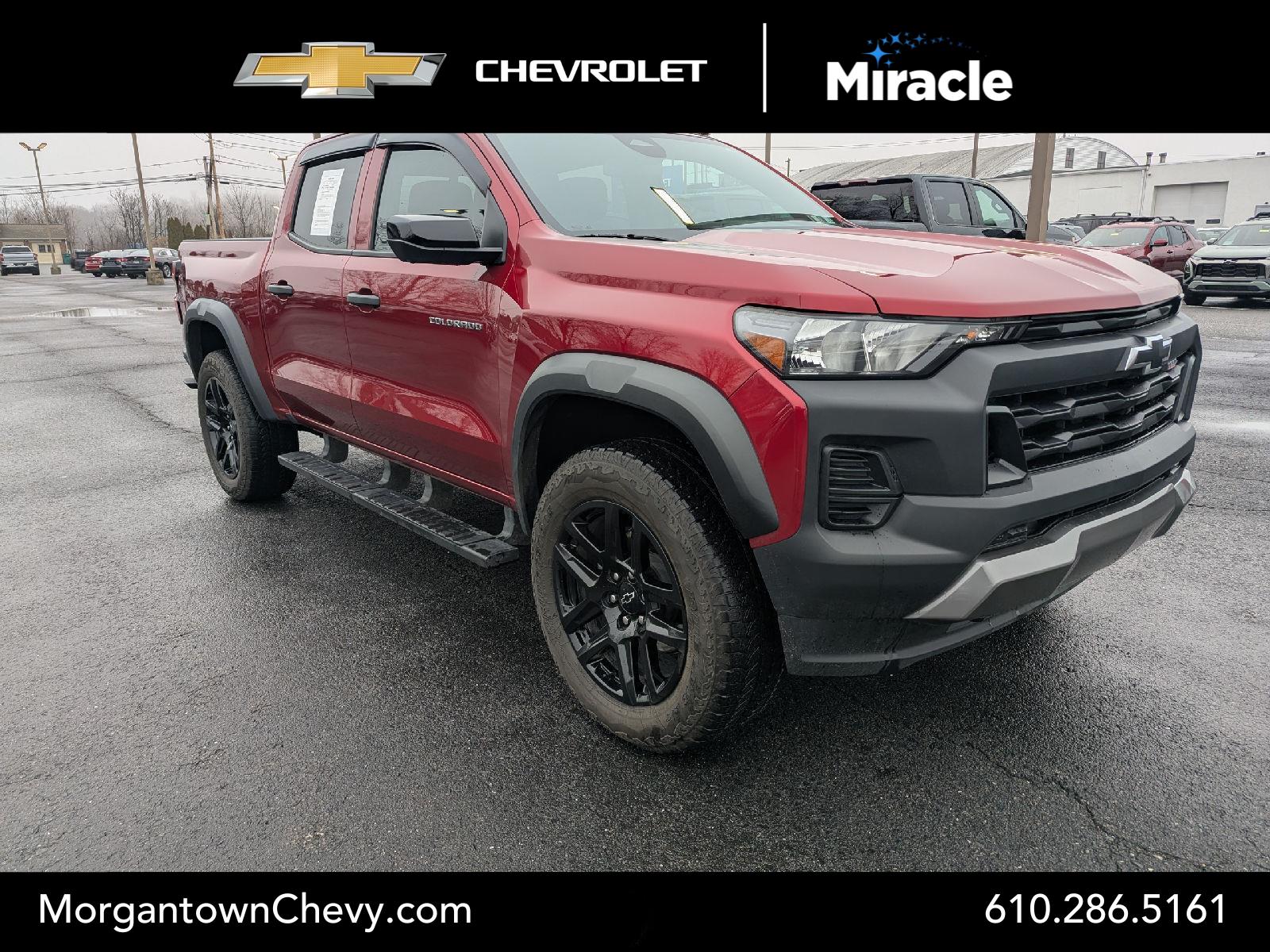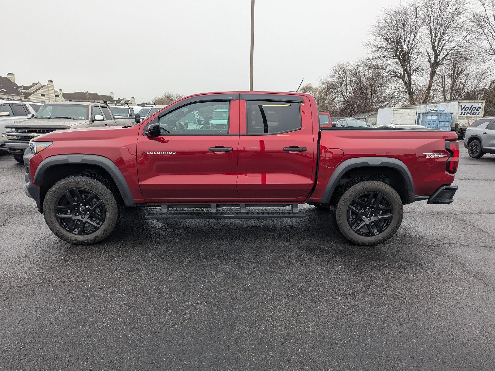 Meet the 2024 Chevrolet Colorado 4WD Trail Boss in striking Red with a Black interior — the perfect blend of rugged capability and everyday comfort. Built to go anywhere, it comes standard with 4WD, a locking differential, 9.5" ground clearance and 265/65R18 tires plus a full‑size spare, so trails and job sites are no problem. Confident stopping and control come from ABS, traction control and vehicle stability systems, while comprehensive airbags and anti-theft features keep you secure. Inside you’ll enjoy leather steering wheel, heated exterior mirrors, keyless entry with remote start and climate control, TPMS and modern conveniences like a trip computer and AM/FM radio — seating for five and strong factory warranties give you peace of mind. Ready to take it for a spin? Stop by today and experience the Trail Boss for yourself.