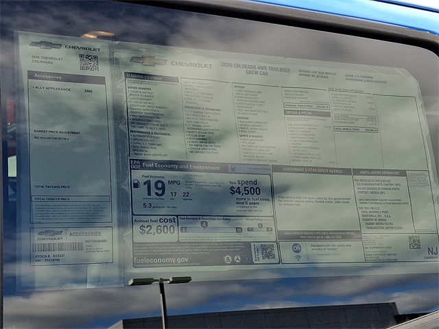 Please provide the list of features for the 2026 Chevrolet Colorado Trail Boss in Blue.