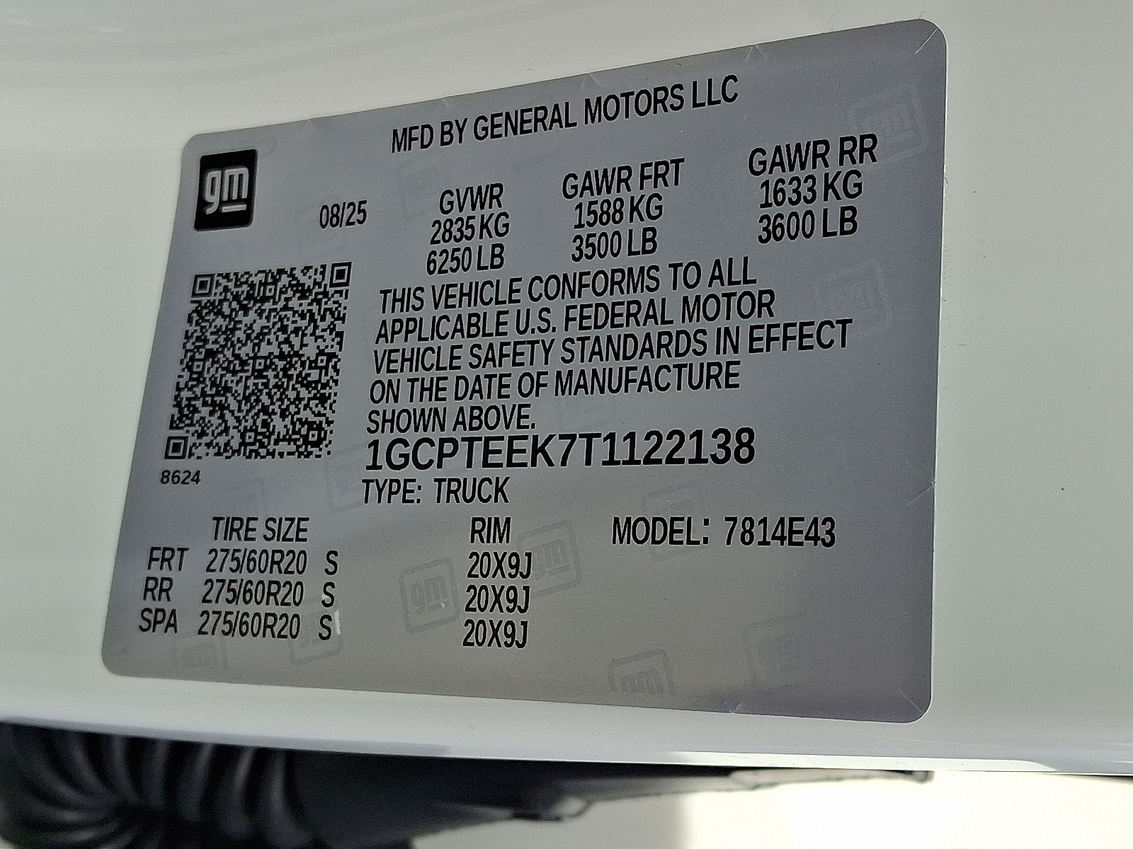 VIN: 1GCPTEEK7T1122138