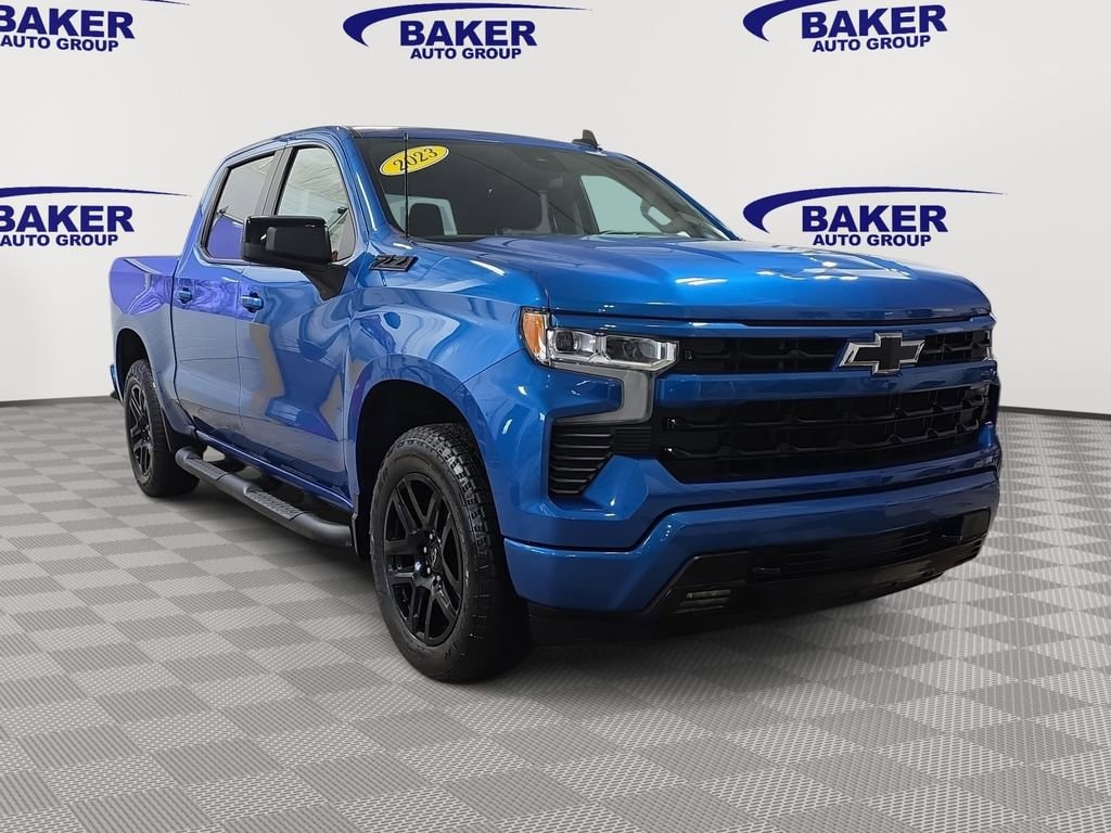 Meet the 2023 Chevrolet Silverado 1500 RST in striking Blue — tough, comfortable and ready for anything. Standard 4WD, locking/limited-slip differentials and a rugged chassis give you confident capability, while heated leather seats (power-adjustable with lumbar), a heated leather-wrapped steering wheel and dual-zone climate keep every drive comfortable. Tech and convenience are covered with keyless entry, remote start with climate control, AM/FM audio with subwoofer and a full-size spare, and safety comes standard — ABS, electronic brake assist, traction/stability control and a full complement of airbags. Backed by Chevrolet’s 3/36k basic and 5/60k powertrain warranties — stop by today and take this one for a test drive.