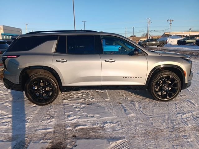 Turn heads in the 2026 Chevrolet Traverse RS — finished in sleek Gray and equipped with a full anti-theft system and child safety locks for peace of mind. This RS blends athletic presence (275/45R22 run-flat tires and sport-tuned suspension) with all-weather confidence thanks to standard AWD, traction control and vehicle stability systems. Inside you’ll find premium comforts like leather-trimmed, heated & cooled front seats with power lumbar, a heated leather steering wheel, panoramic power sunroof, and seating for seven. Tech-packed with navigation, a premium subwoofer, keyless entry and remote start with climate control, plus ABS, multiple airbags and advanced braking aids for safety. Backed by a 3/36 basic and 5/60 powertrain warranty — stop by for a test drive and see why the Traverse RS is the complete family SUV with a sporty edge.