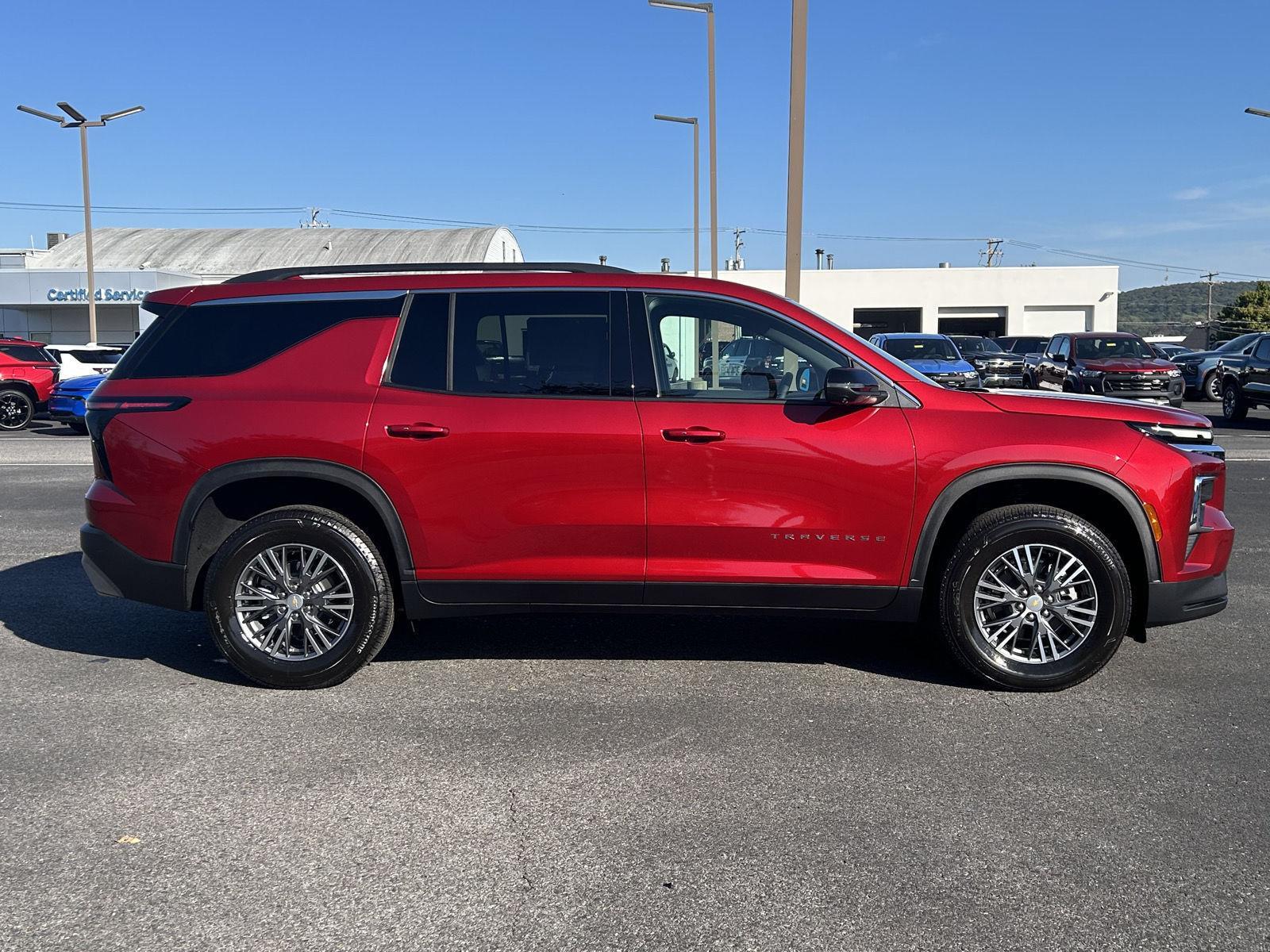 Meet the 2026 Chevrolet Traverse LT — bold red exterior, sleek black interior, and seating for seven. This Traverse blends family-ready space and confidence-in-any-weather capability with standard AWD, stability and traction control, ABS, and a full suite of airbags. Enjoy comfort and convenience with heated front seats, heated leather steering wheel, driver power seat with lumbar, dual-zone climate controls, keyless entry and remote start with climate preconditioning — plus an upgraded power sunroof and navigation for every drive. Riding on 22-inch all-season run-flat tires and backed by Chevy’s reassuring warranties (3yr/36K basic, 5yr/60K powertrain, 6yr/100K rust), it’s a compelling package. Stop by for a test drive today — let me show you why the Traverse LT stands out.
