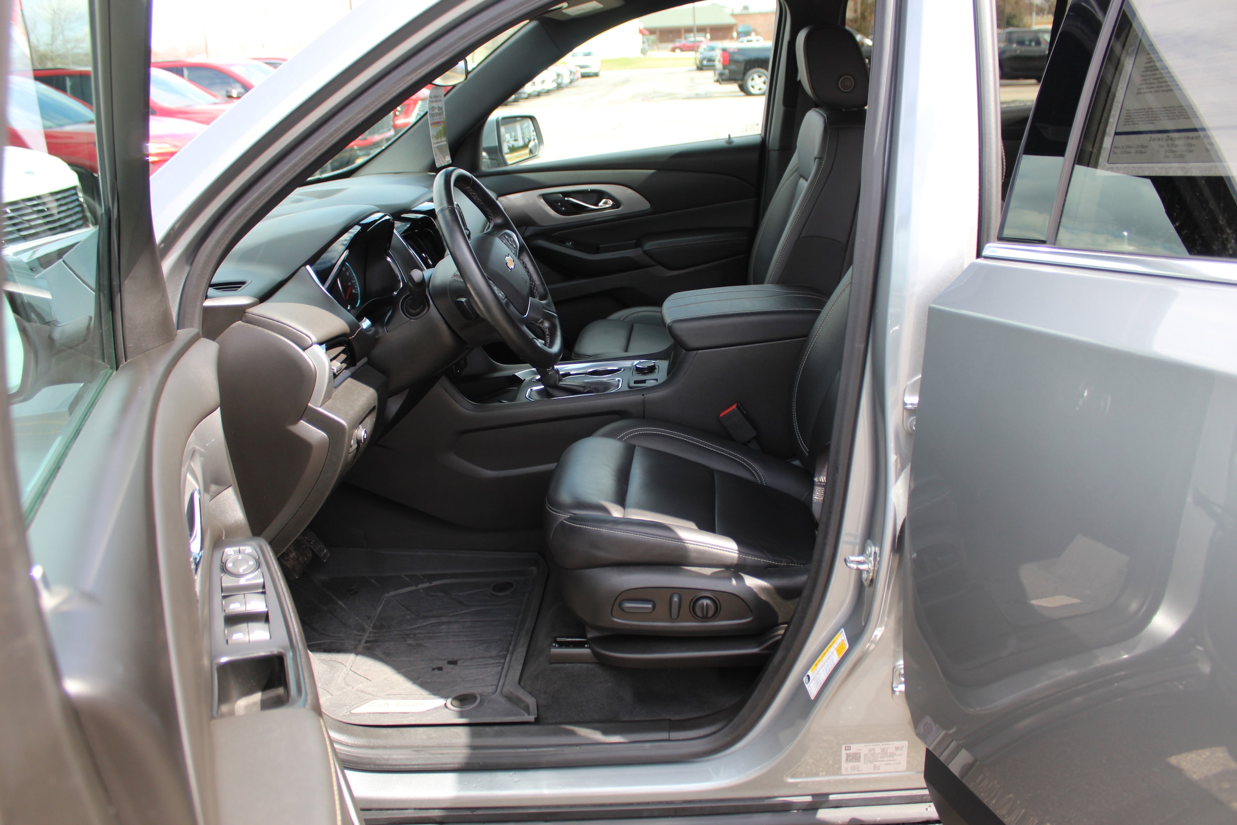 Turn heads in this 2023 Chevrolet Traverse LT Leather in sleek Gray — a roomy, family-ready mid-size SUV that blends comfort, safety and confidence on the road. Enjoy supple leather seats, heated front seats and heated leather steering wheel, plus power multi-adjustable driver and passenger seats with lumbar support for long‑haul comfort. Built for all-weather driving, it comes standard with AWD, ABS, traction and stability control, a full complement of airbags and vehicle anti‑theft protection. Convenience features include keyless entry/start, remote ignition with climate control, automatic headlights, a roof rack and a premium AM/FM system with subwoofer — plus a full‑size spare for peace of mind. Backed by a 3‑year/36K basic, 5‑year/60K powertrain and 6‑year/100K rust warranty — stop by today and take the Traverse for a test drive.