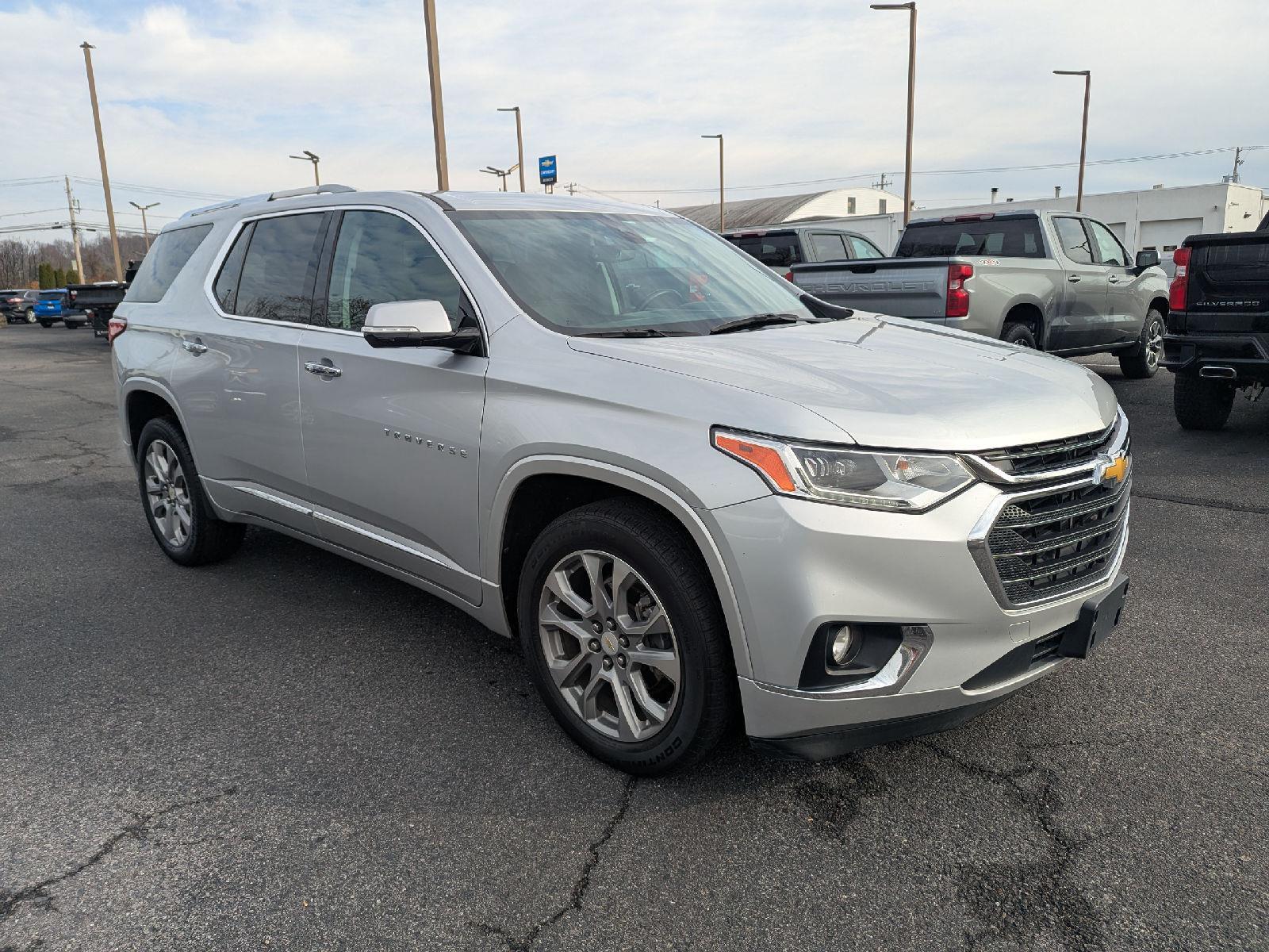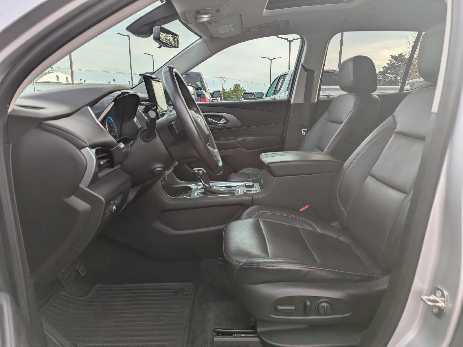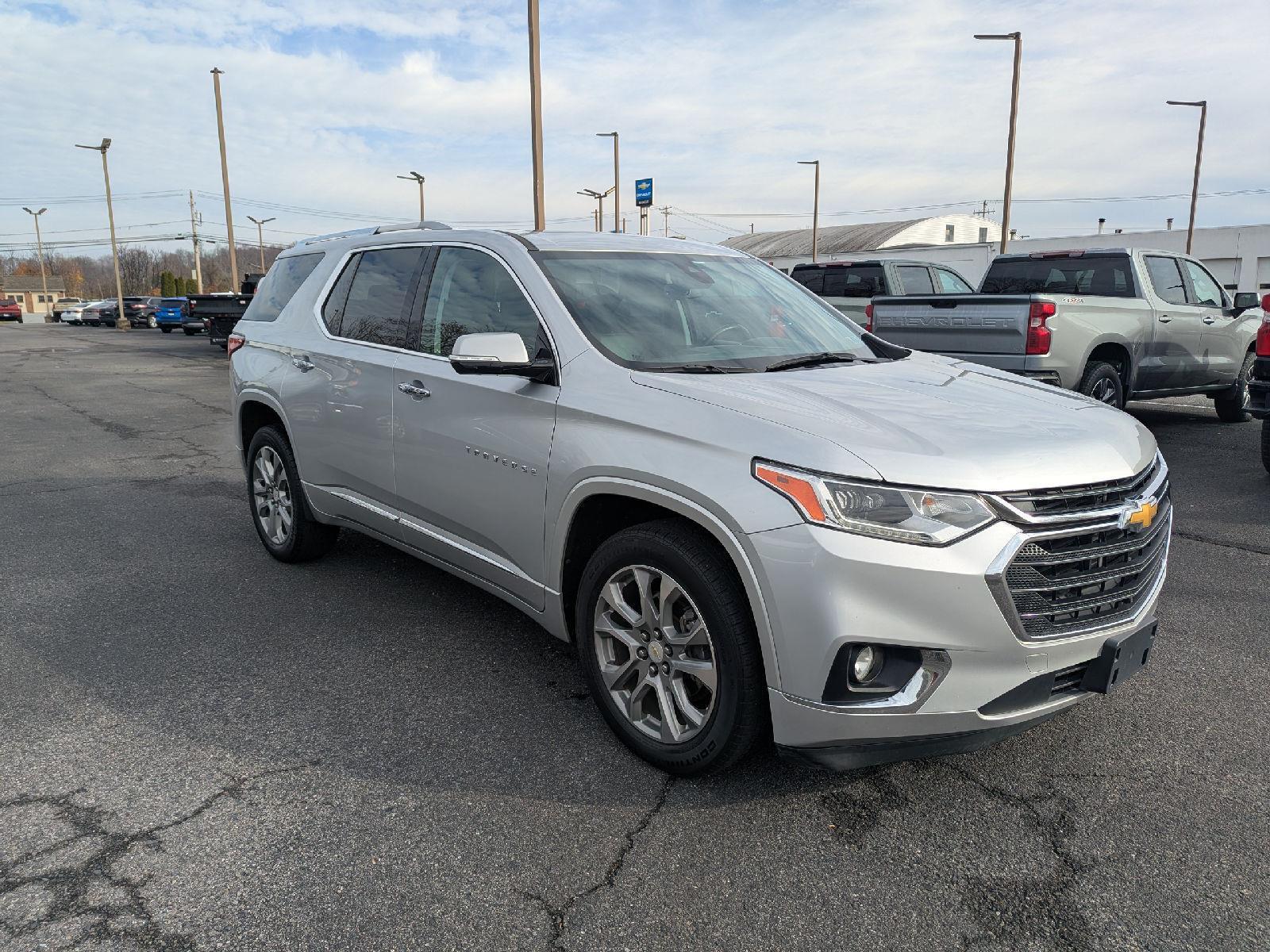 Turn heads in this 2018 Chevrolet Traverse Premier — sleek Silver exterior with a sophisticated Black interior and seating for seven. The Premier package gives you comfort and control with heated front seats, driver and passenger multi-adjustable power seats with lumbar support, cruise control and a telescoping steering column. Safety is solid: multiple airbags, ABS four‑wheel brakes, child safety door locks and vehicle anti-theft protection. Finished with fog lights and 20" alloy wheels shod in P255/55R20 tires, this Traverse blends style, space and confidence for family drives or weekend getaways.