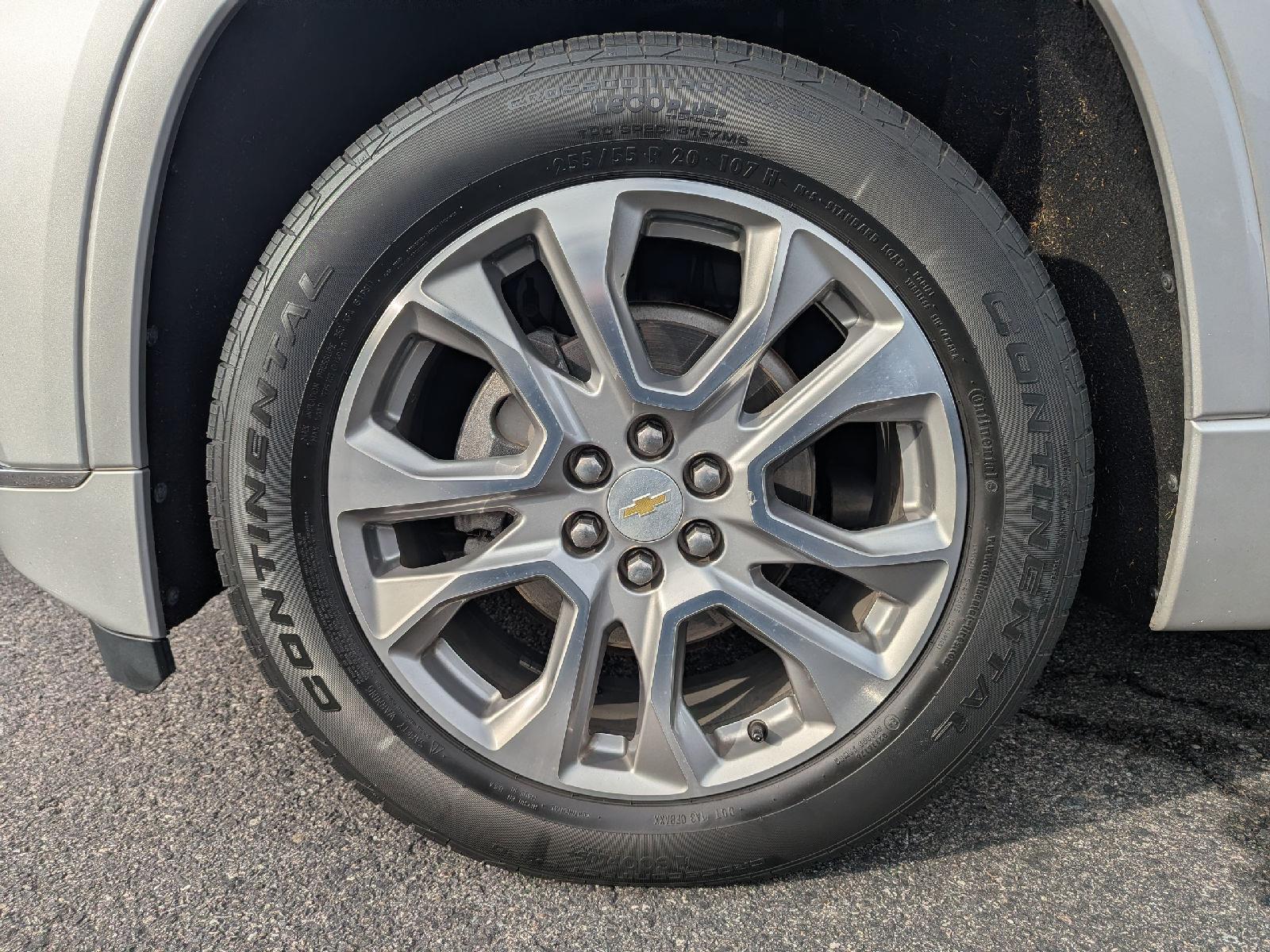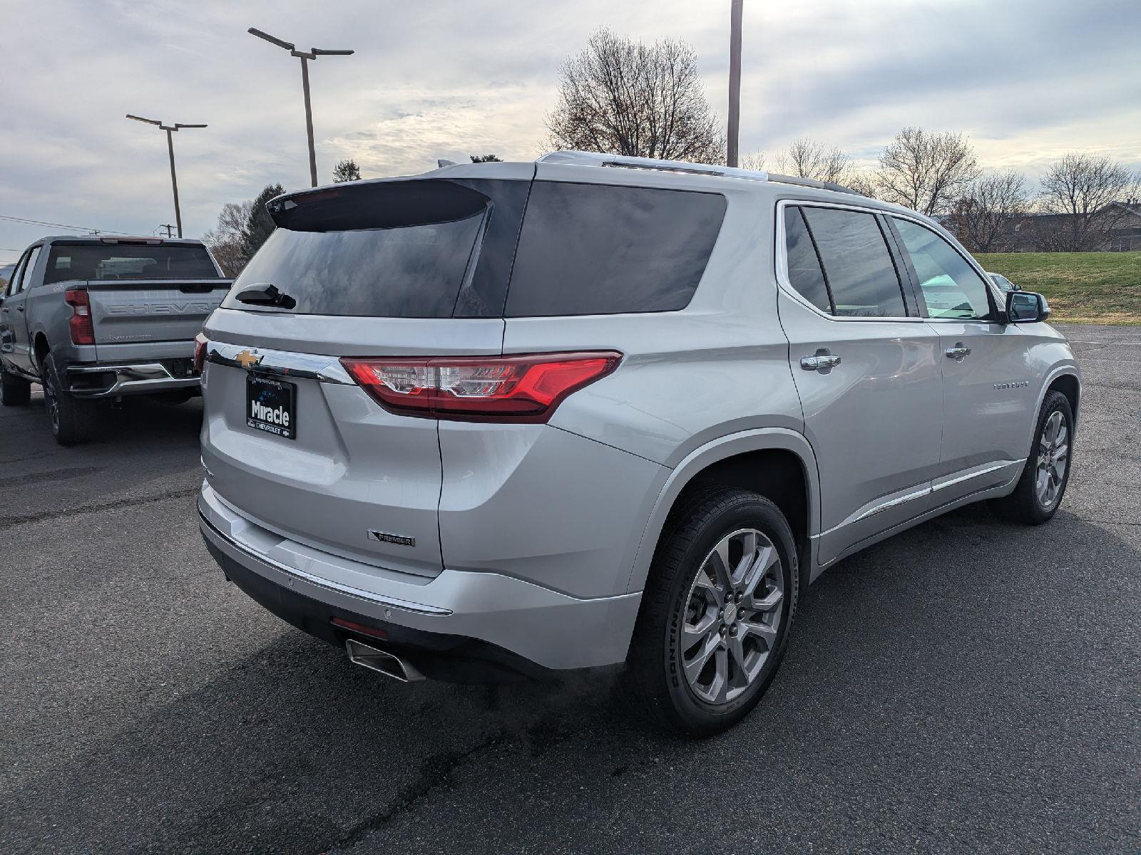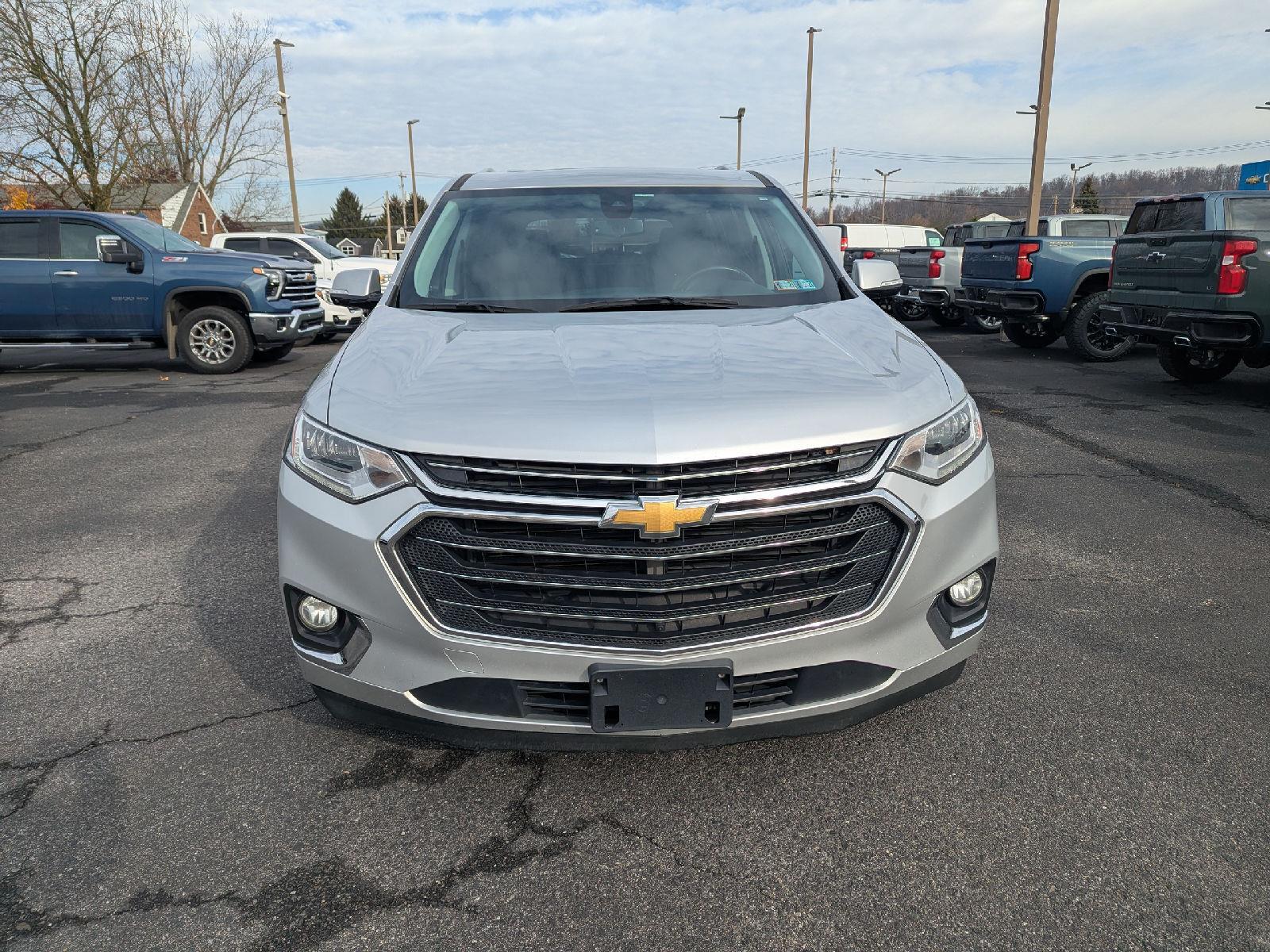 Turn heads in this 2018 Chevrolet Traverse Premier — sleek Silver exterior with a sophisticated Black interior and seating for seven. The Premier package gives you comfort and control with heated front seats, driver and passenger multi-adjustable power seats with lumbar support, cruise control and a telescoping steering column. Safety is solid: multiple airbags, ABS four‑wheel brakes, child safety door locks and vehicle anti-theft protection. Finished with fog lights and 20" alloy wheels shod in P255/55R20 tires, this Traverse blends style, space and confidence for family drives or weekend getaways.