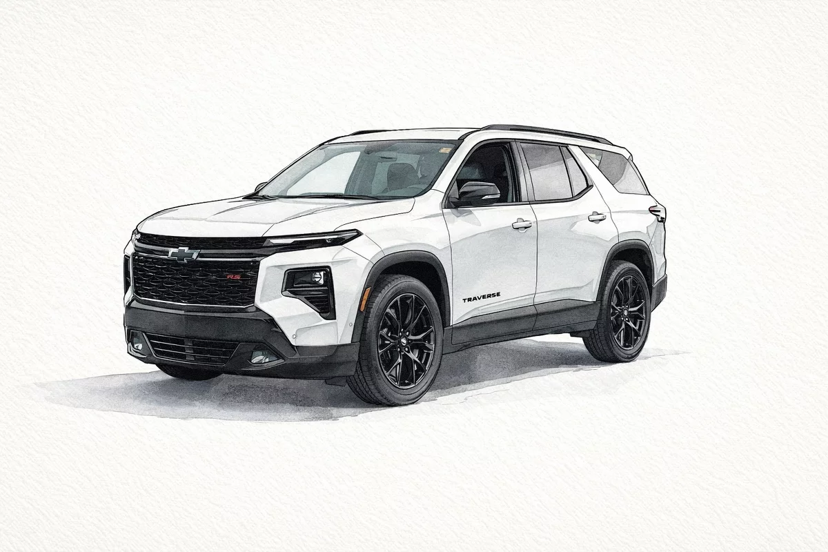 Meet the 2026 Chevrolet Traverse RS — a bold white exterior with a sleek black leather interior that blends family-ready practicality with sporty presence. This AWD SUV comes loaded: 22-inch run-flat tires, power sunroof, navigation with subwoofer, keyless entry and remote ignition with climate control, plus heated/cooled power front seats and a heated leather steering wheel for everyday comfort. Confidence comes standard too — ABS, traction and stability control, full airbag protection, vehicle anti-theft and child safety locks keep everyone secure. Seating for seven, plenty of cargo room, and strong factory coverage (3 yr/36K basic, 5 yr/60K powertrain, 6 yr/100K rust) make it as reliable as it is stylish. Ready to take a closer look or schedule a test drive?