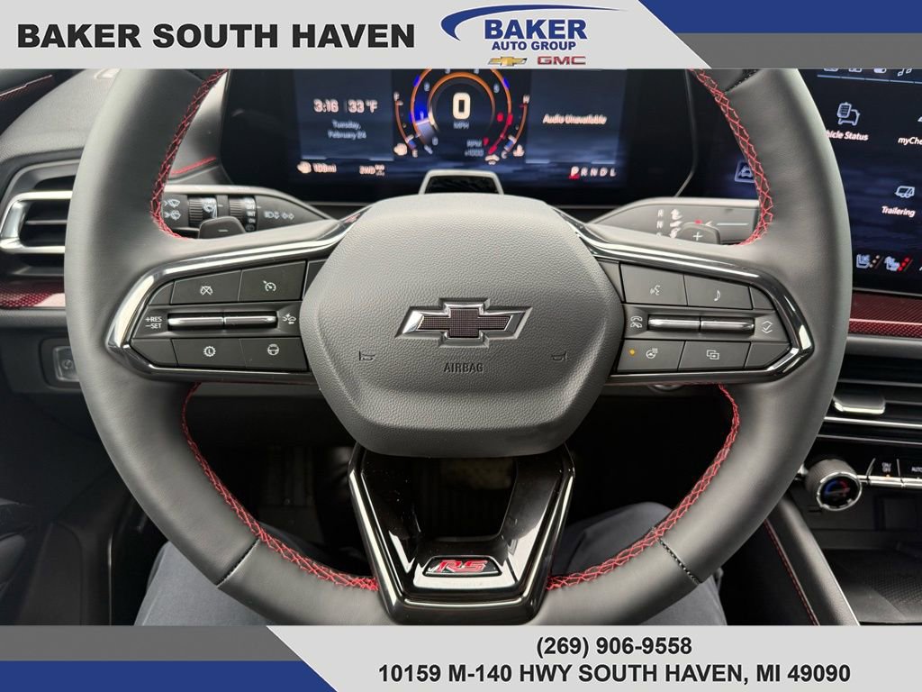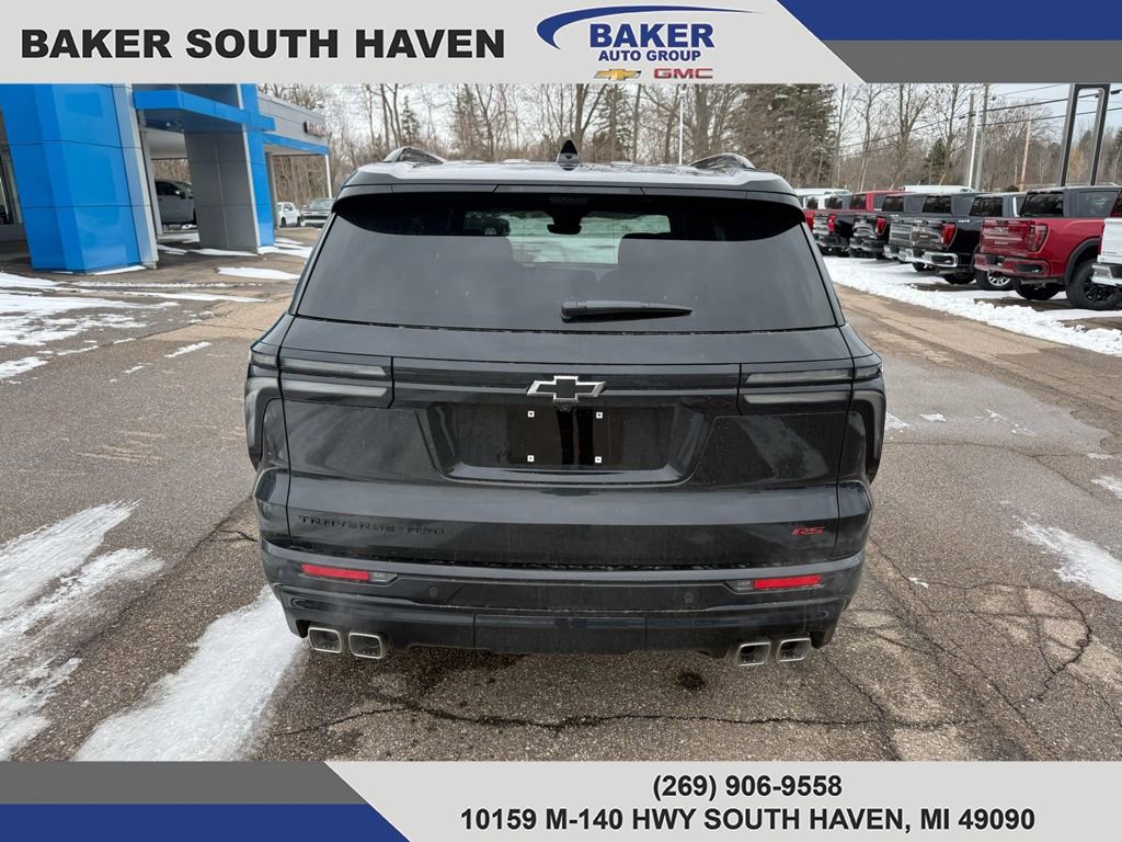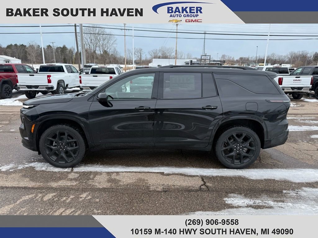 Turn heads in the 2026 Chevrolet Traverse RS in sleek Black — a bold three-row SUV built for family life and spirited driving. Standard AWD, electronic stability and traction control with limited-slip differential and run-flat 22" tires give you confidence in any condition. Inside you'll find leather heated and cooled front seats with power adjustments, a heated leather steering wheel, navigation, a subwoofer and a power sunroof for comfort and premium tech. Safety comes first with multiple airbags, ABS with electronic brake assist, vehicle anti‑theft and child door locks — all backed by Chevrolet’s 3‑yr/36k basic and 5‑yr/60k powertrain warranties. Come in for a test drive and see why the Traverse RS is the complete package.